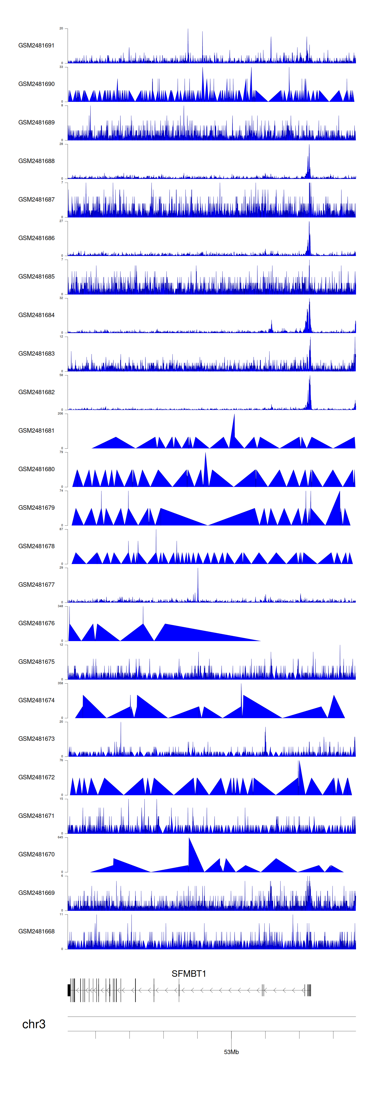 > Dataset: GSE94732 - SFMBT1 peak across samples