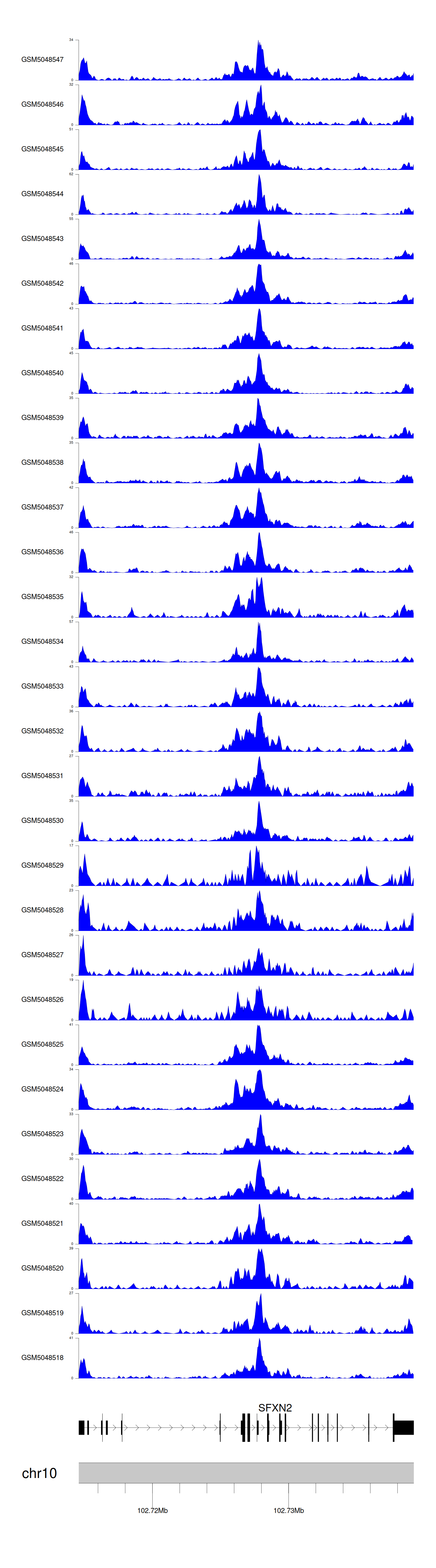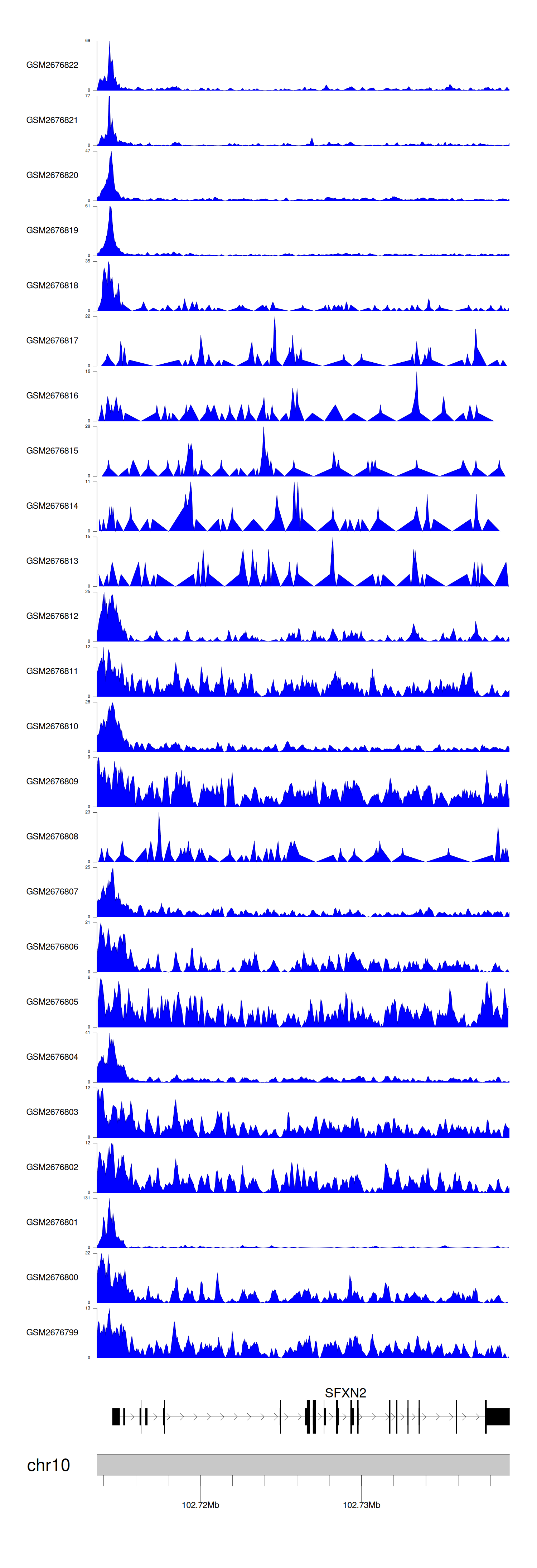 > Dataset: GSE100376 - SFXN2 peak across samples