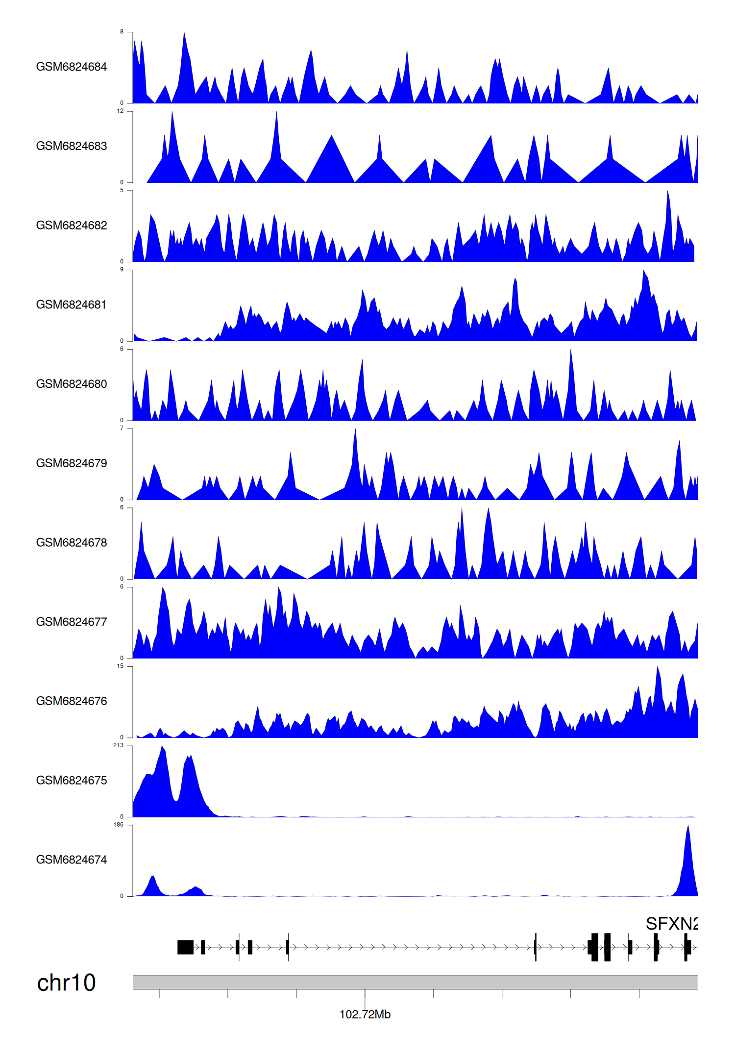 > Dataset: GSE165703 - SFXN2 peak across samples