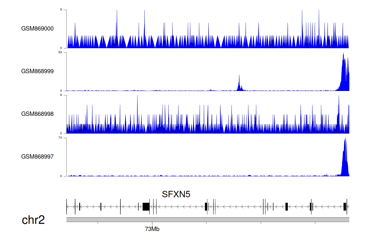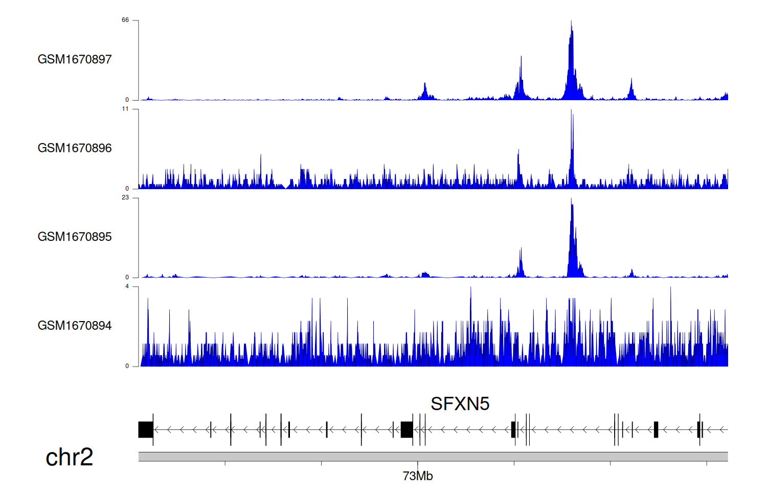 > Dataset: GSE68402 - SFXN5 peak across samples