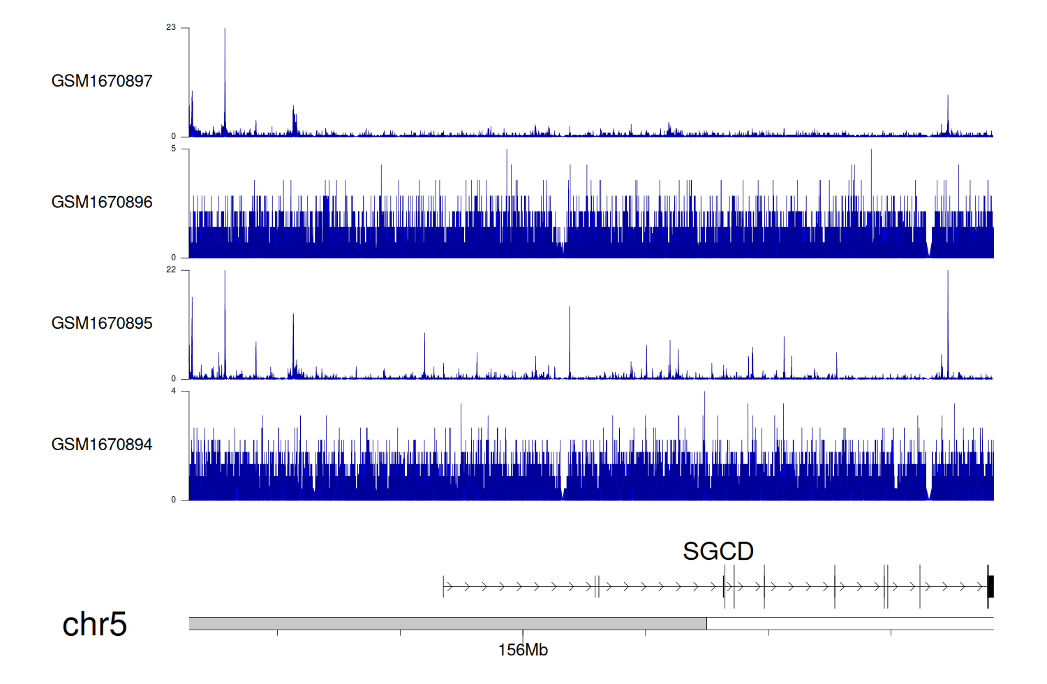 > Dataset: GSE100400 - SGCD peak across samples