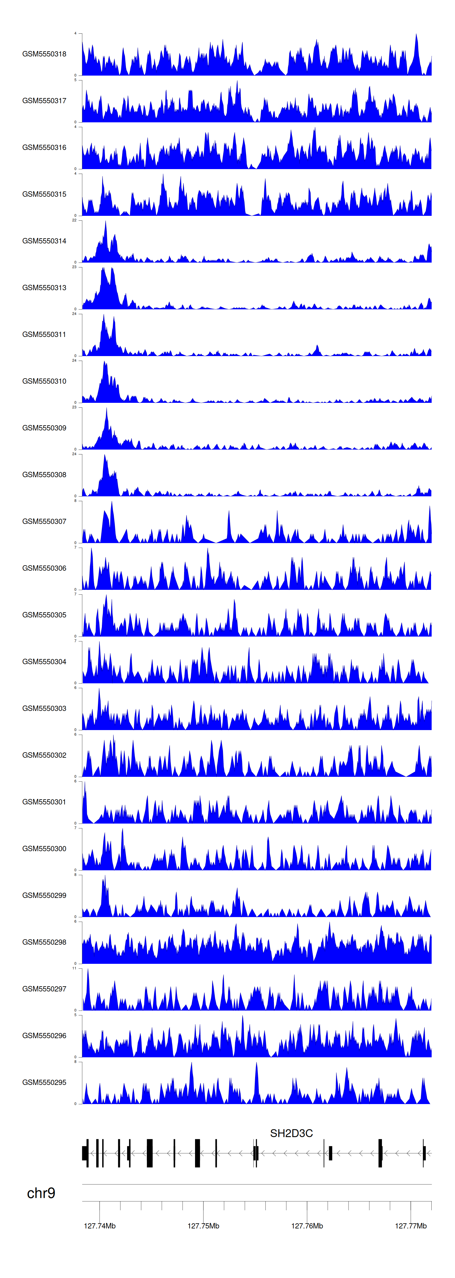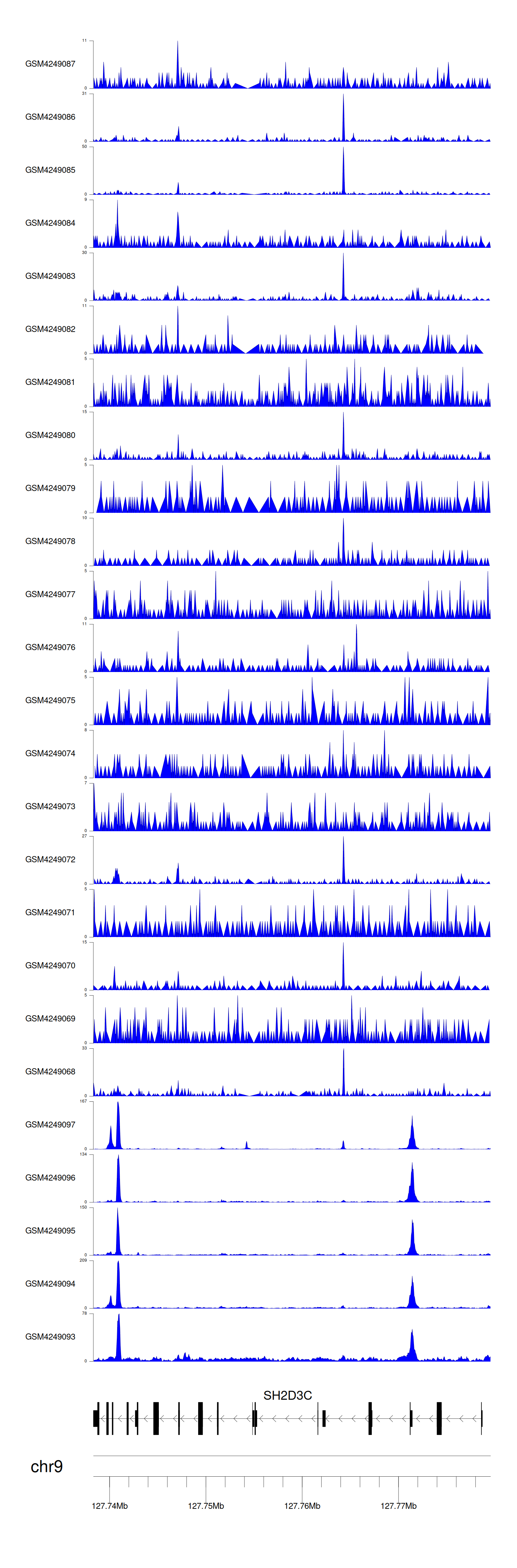 > Dataset: GSE143026 - SH2D3C peak across samples