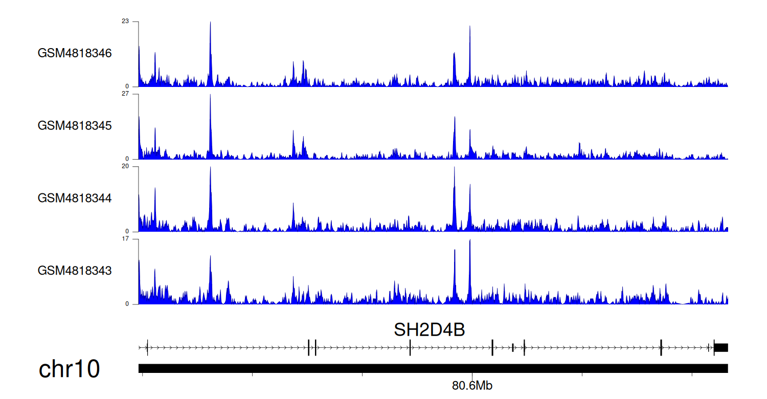 > Dataset: GSE131257 - SH2D4B peak across samples