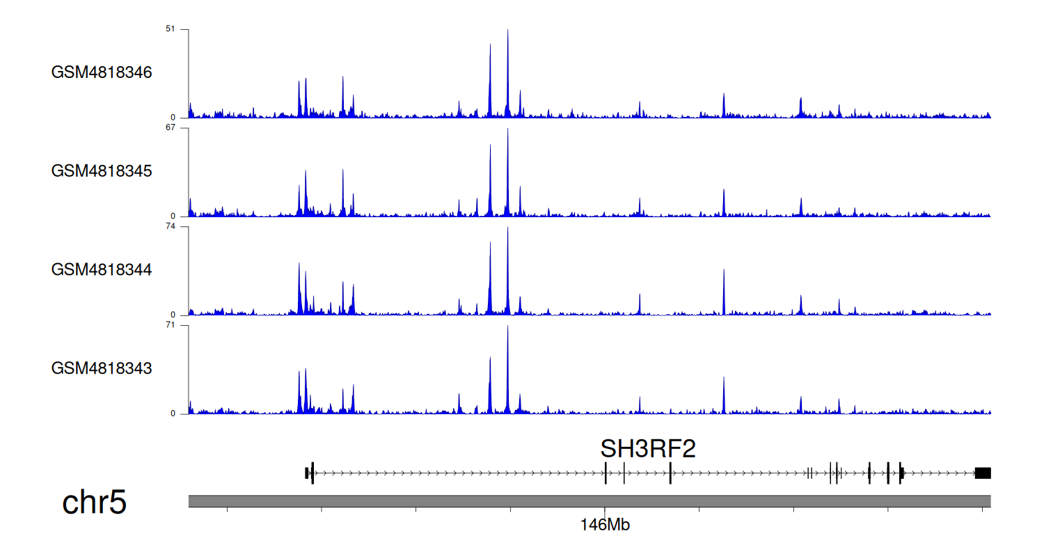 > Dataset: GSE131257 - SH3RF2 peak across samples