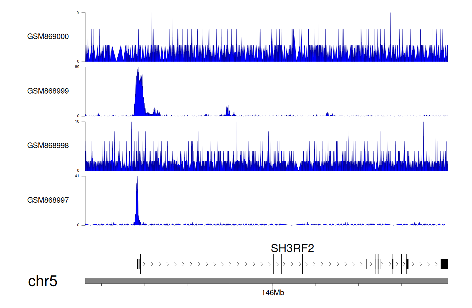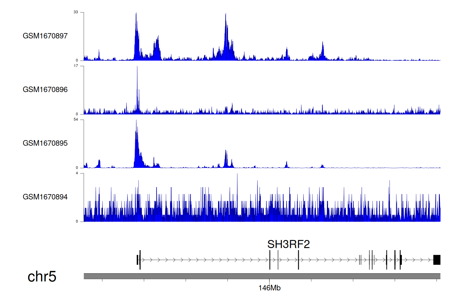 > Dataset: GSE68402 - SH3RF2 peak across samples