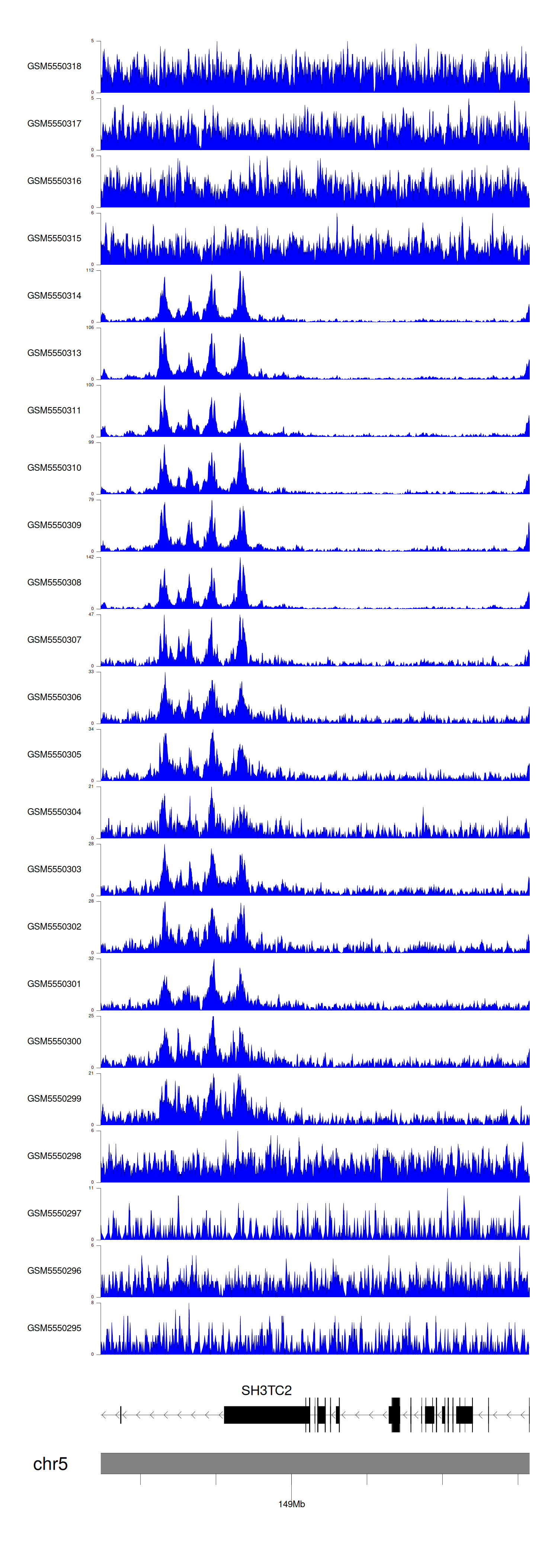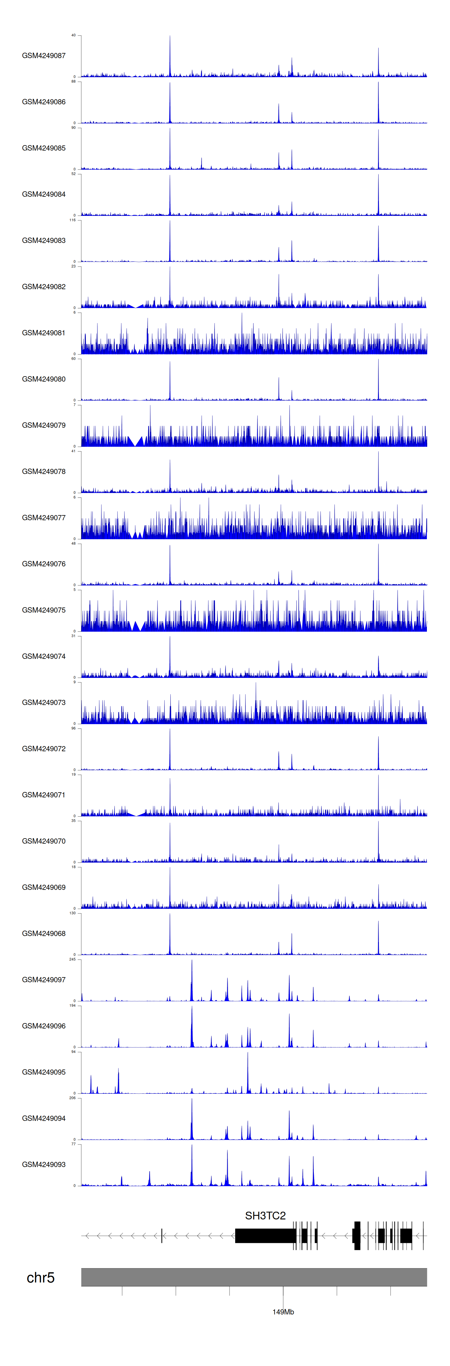 > Dataset: GSE143026 - SH3TC2 peak across samples