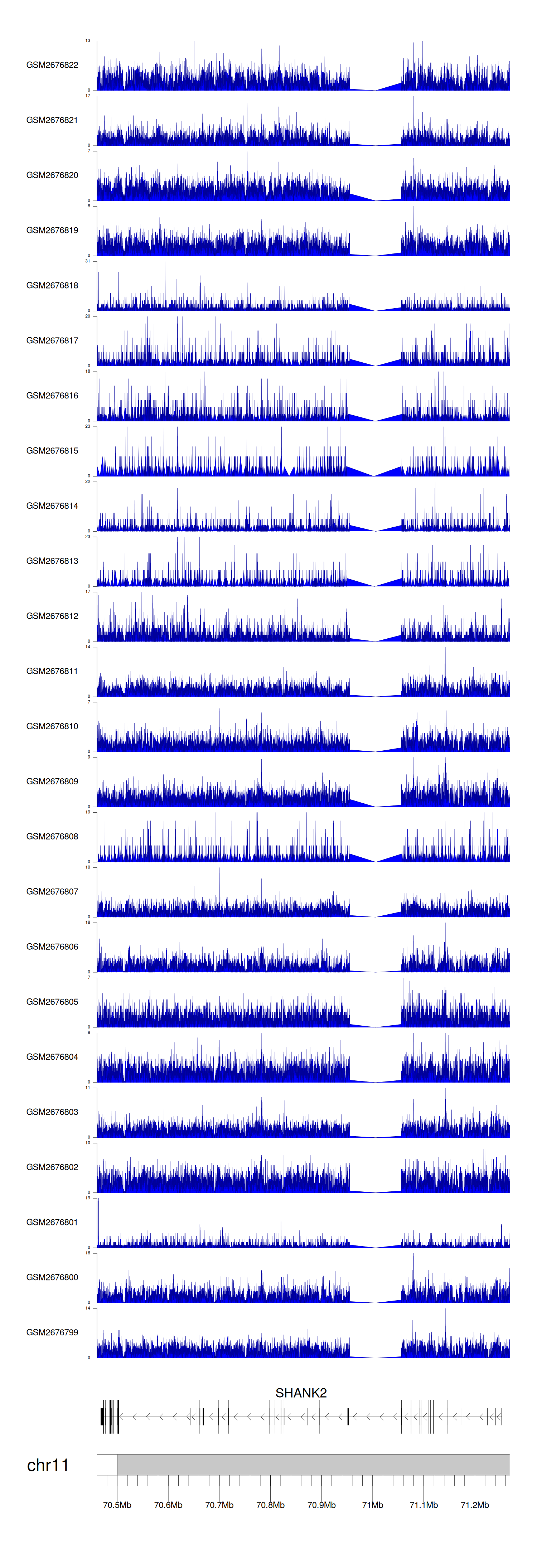 > Dataset: GSE100376 - SHANK2 peak across samples