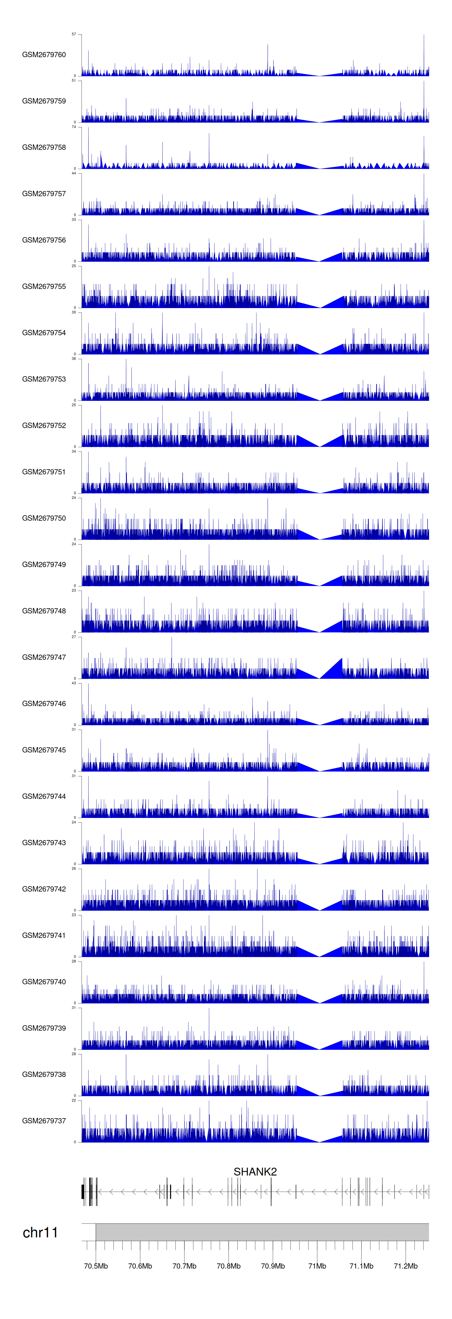 > Dataset: GSE30738 - SHANK2 peak across samples