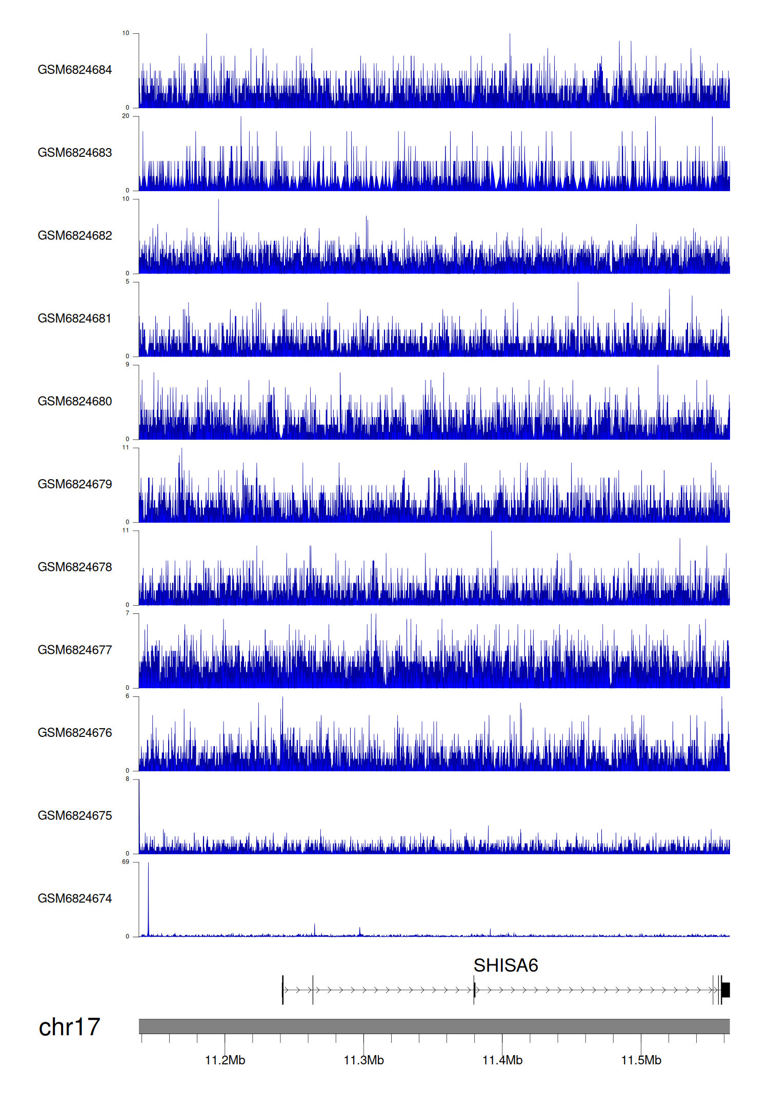 > Dataset: GSE165703 - SHISA6 peak across samples
