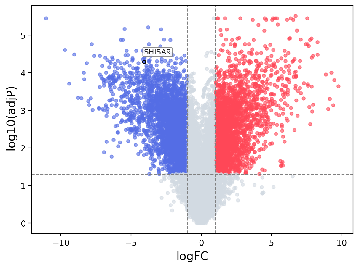 When the query gene is differentially changed in the dataset, a volcano/bar plot will be displayed.