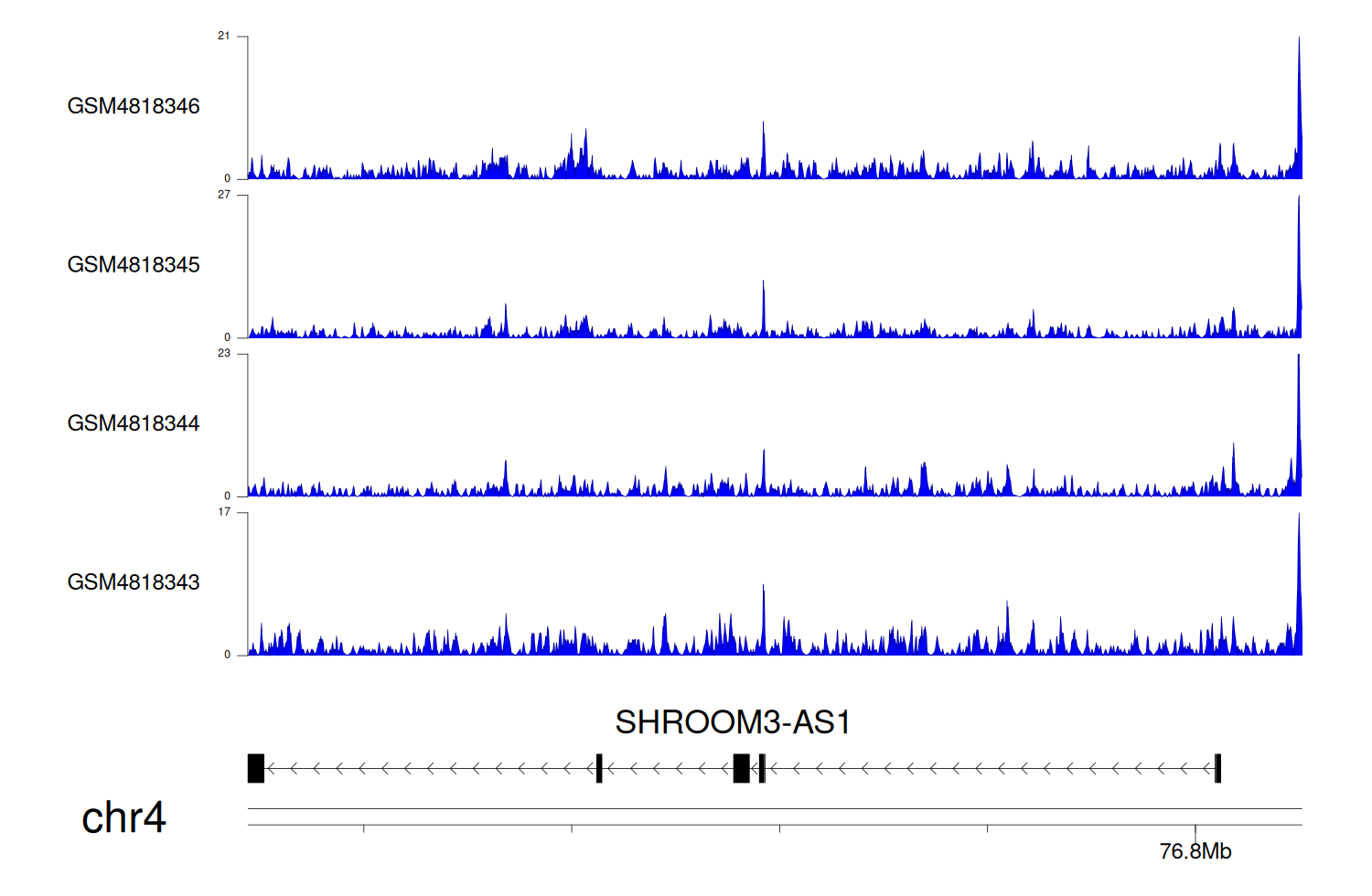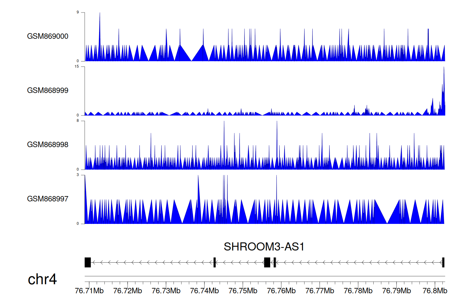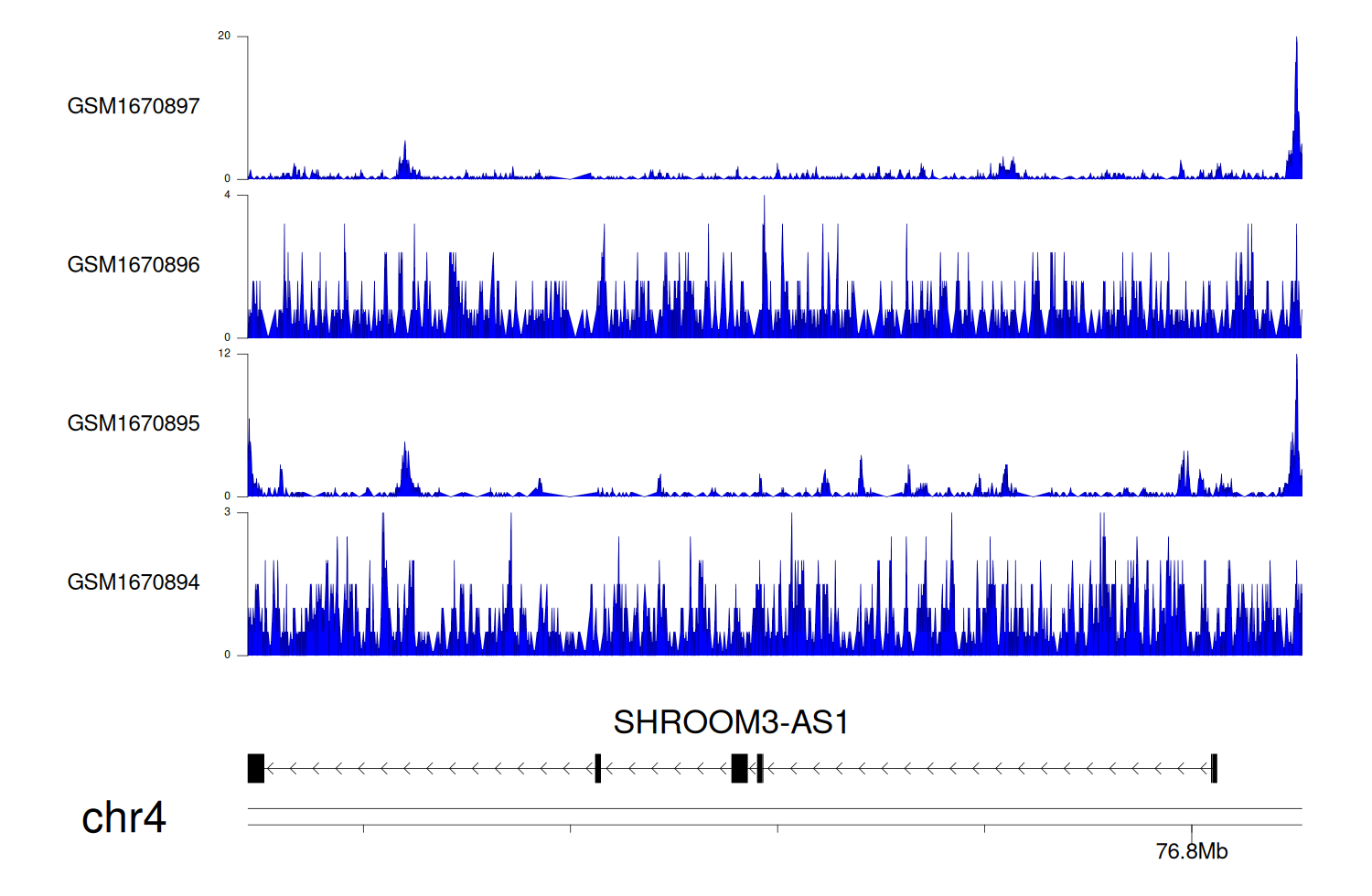 > Dataset: GSE68402 - SHROOM3-AS1 peak across samples
