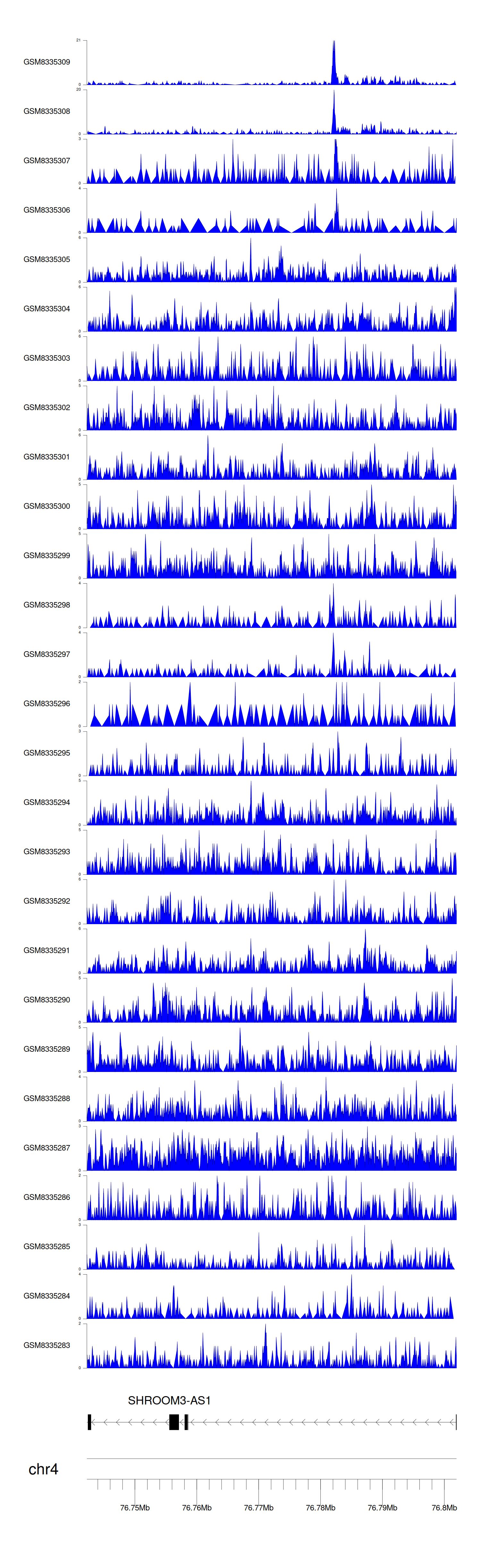> Dataset: GSE270130 - SHROOM3-AS1 peak across samples