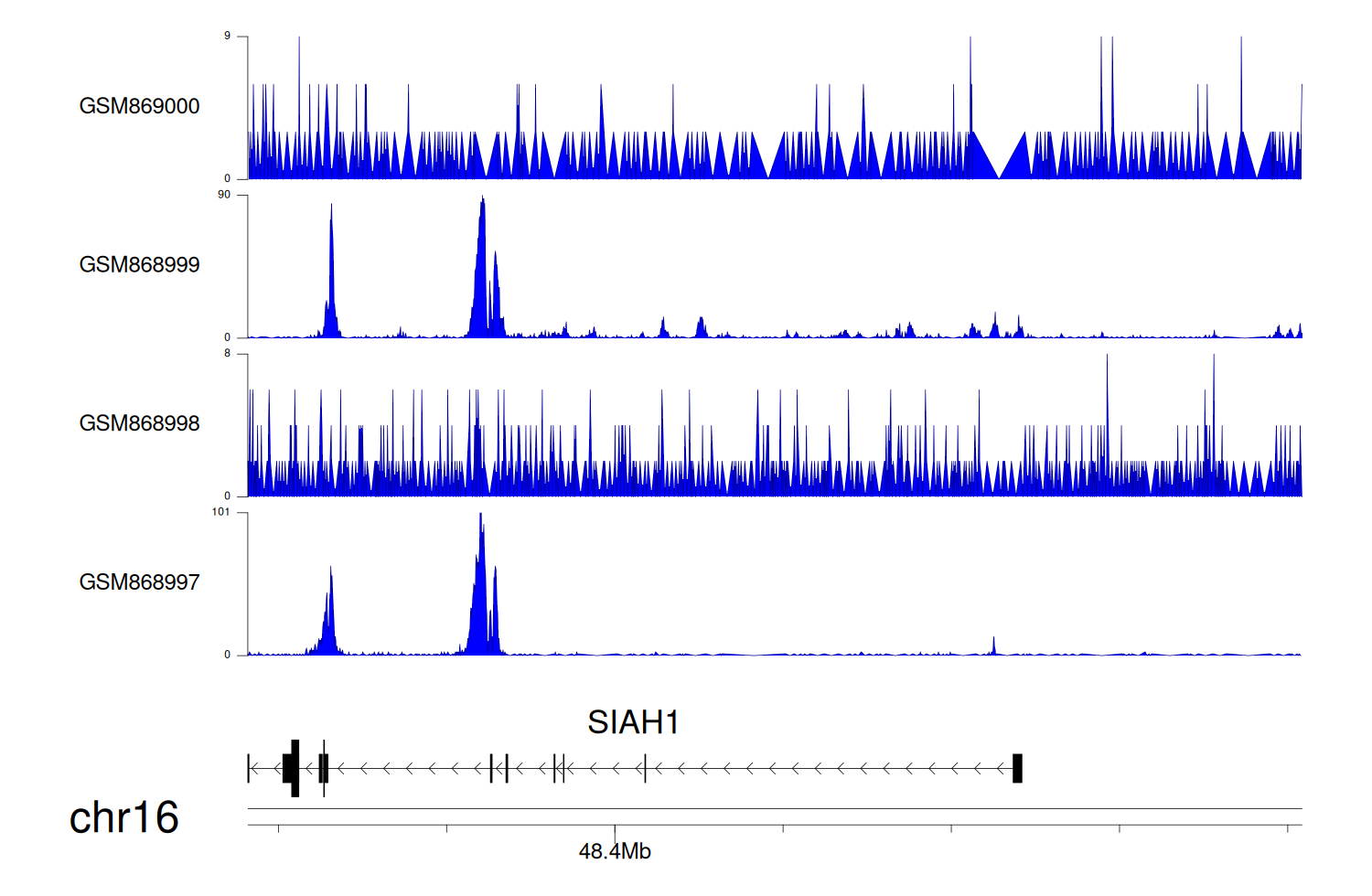 > Dataset: GSE68402 - SIAH1 peak across samples