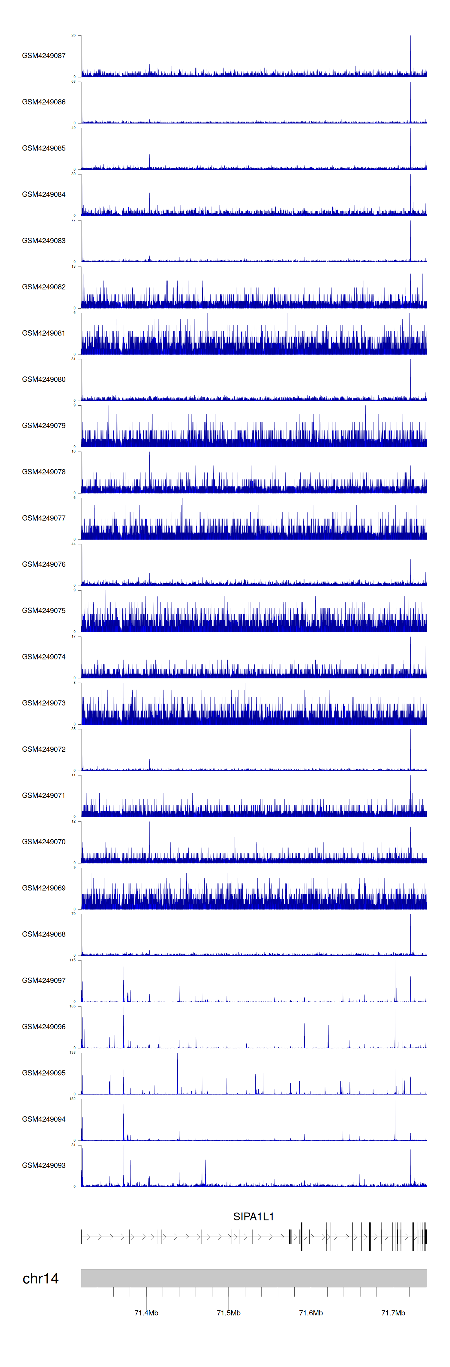 > Dataset: GSE143026 - SIPA1L1 peak across samples