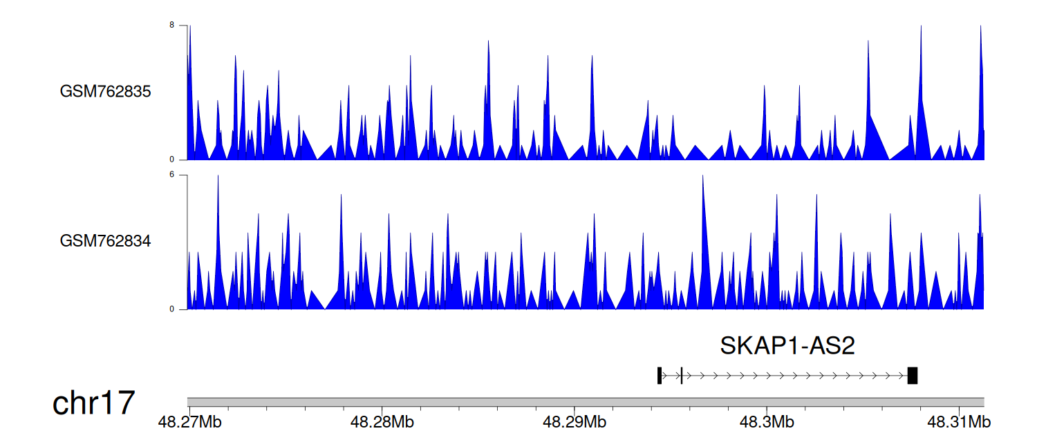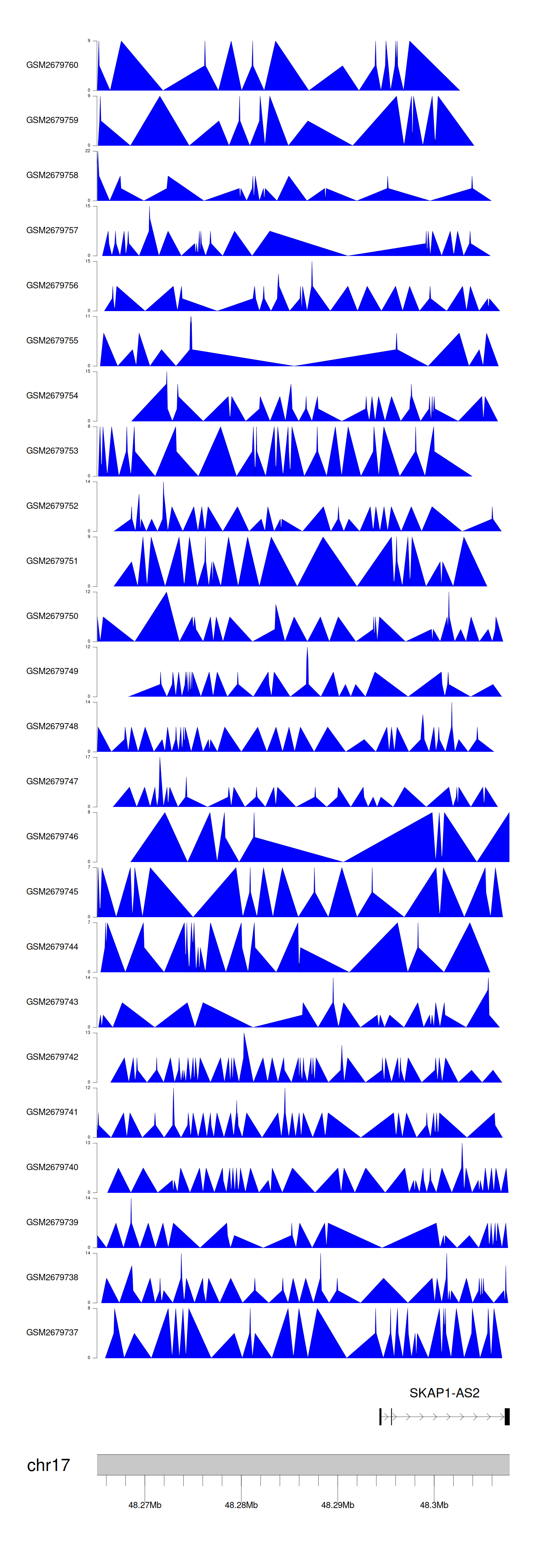 > Dataset: GSE30738 - SKAP1-AS2 peak across samples
