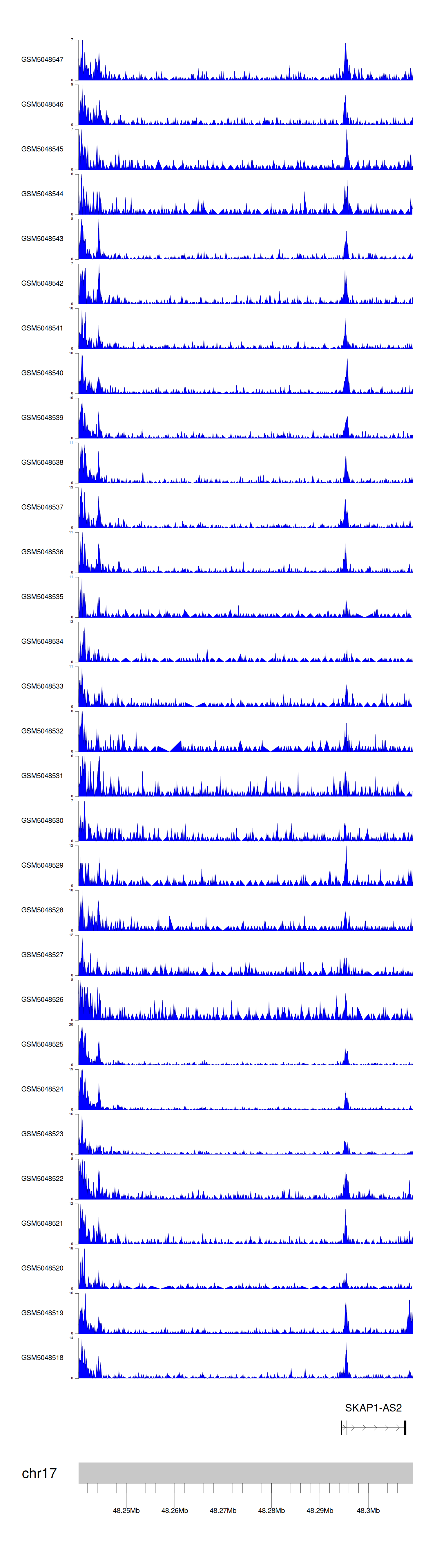 > Dataset: GSE165703 - SKAP1-AS2 peak across samples