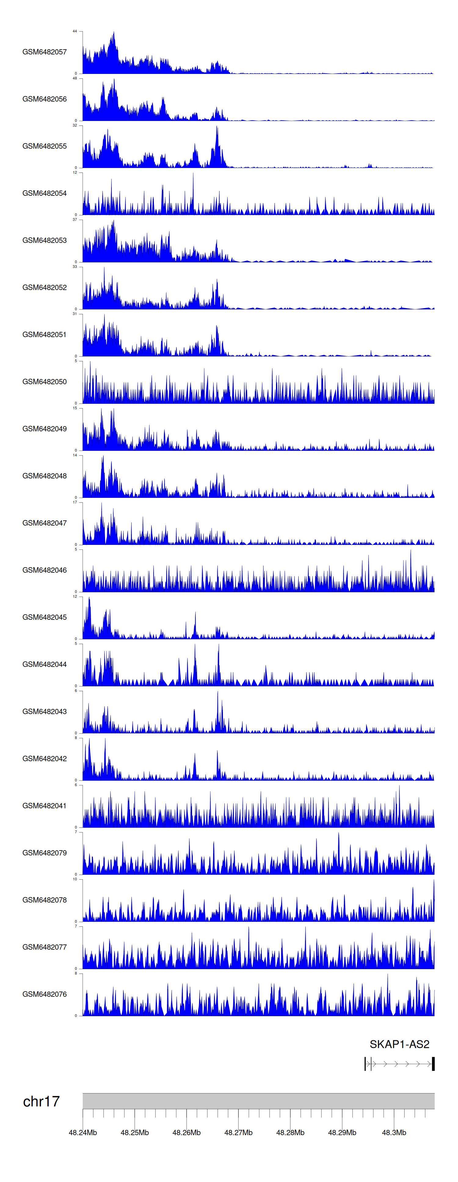 > Dataset: GSE165705 - SKAP1-AS2 peak across samples