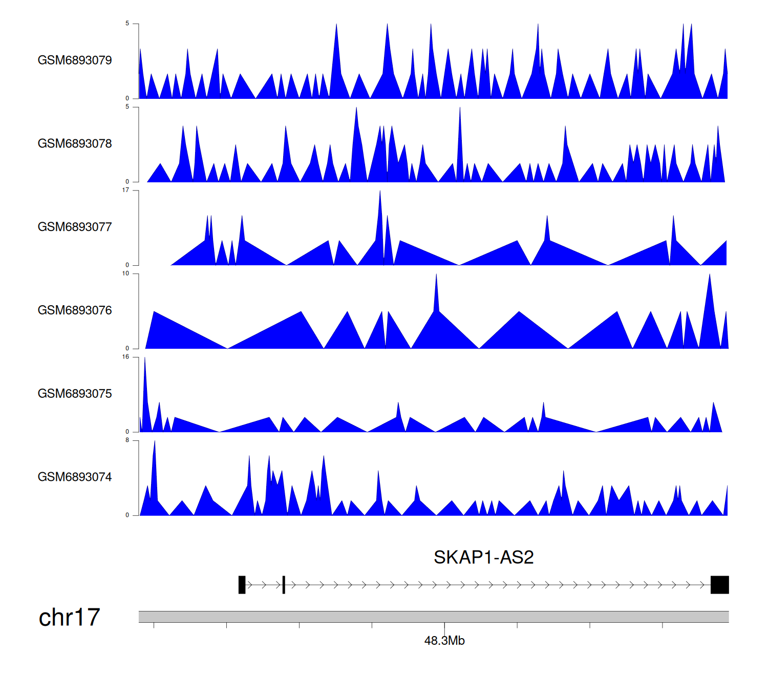 > Dataset: GSE211651 - SKAP1-AS2 peak across samples