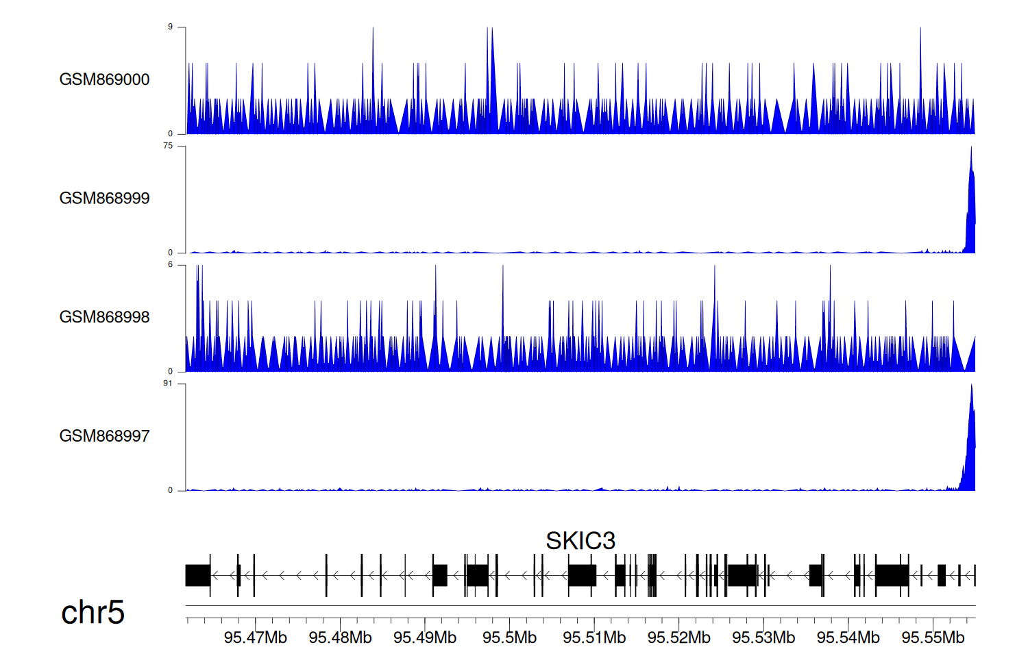 > Dataset: GSE100400 - SKIC3 peak across samples