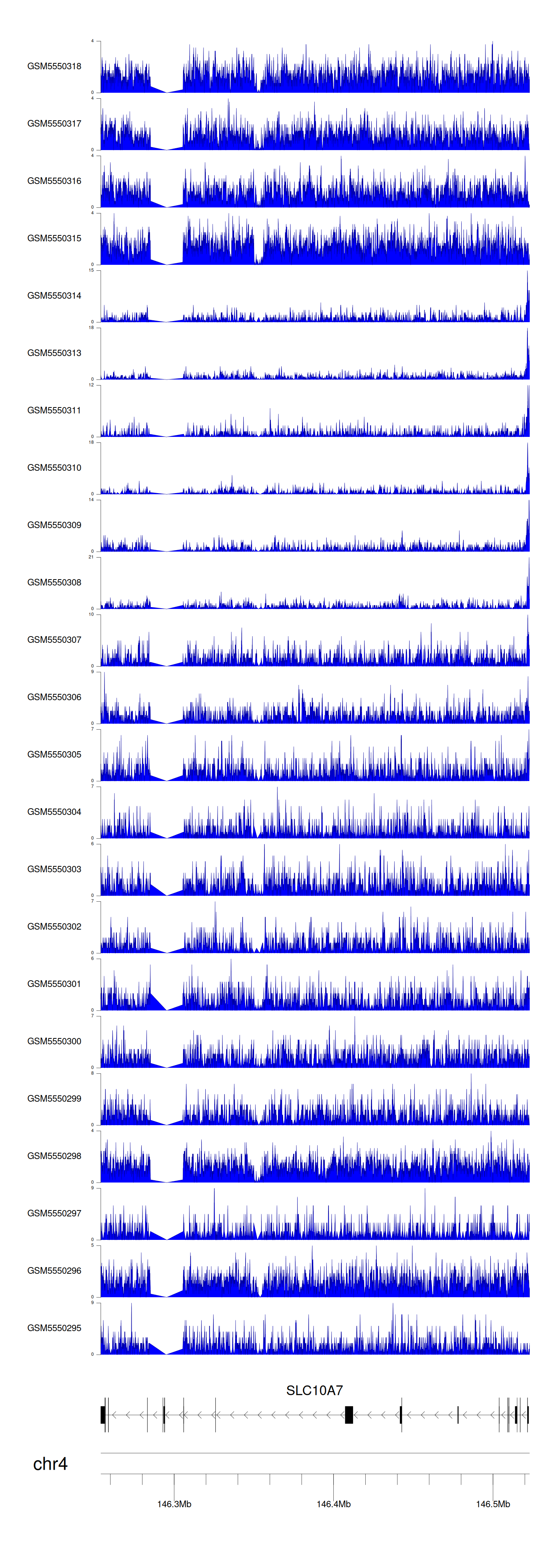 > Dataset: GSE143026 - SLC10A7 peak across samples