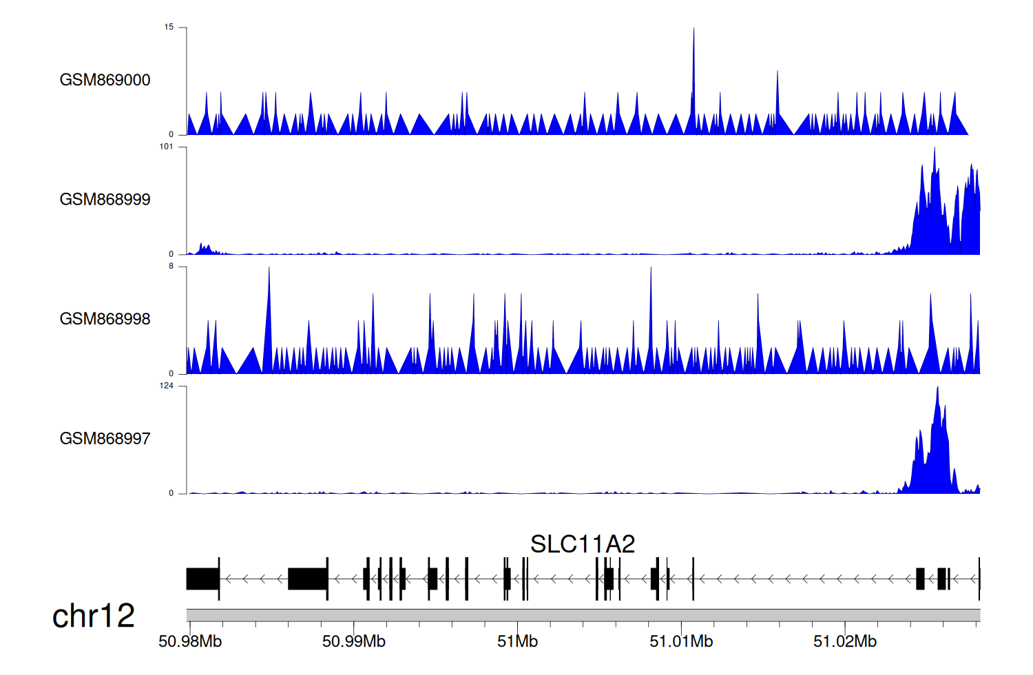 > Dataset: GSE68402 - SLC11A2 peak across samples