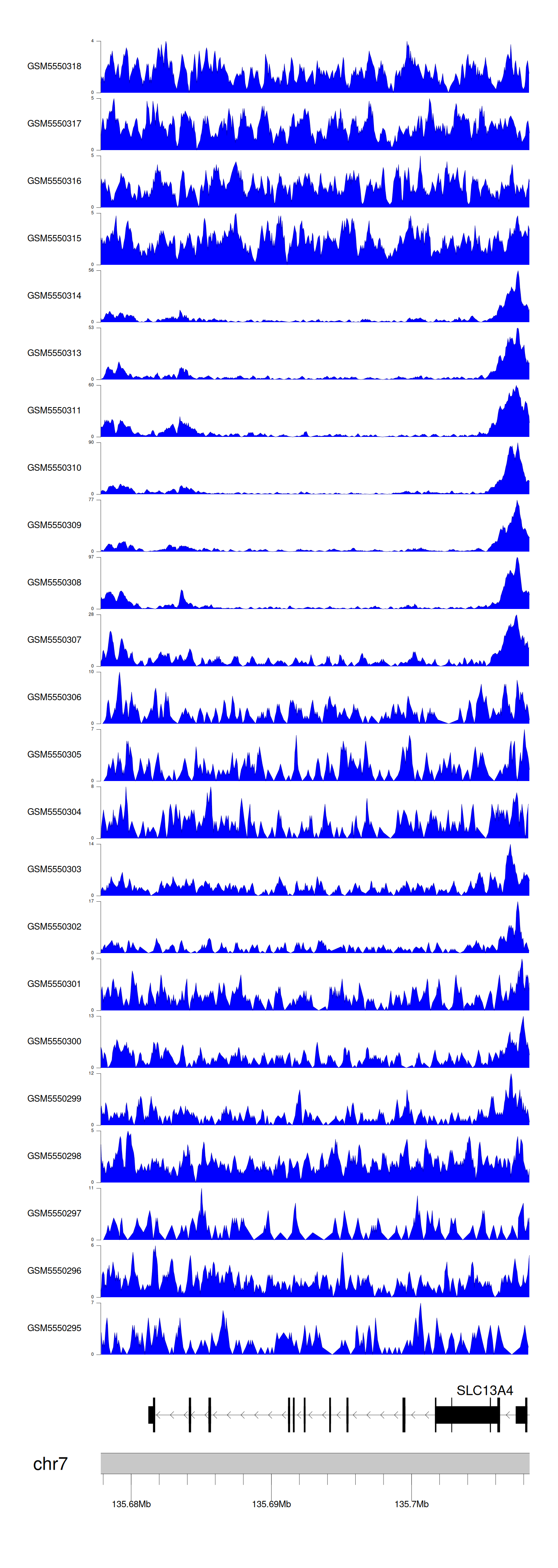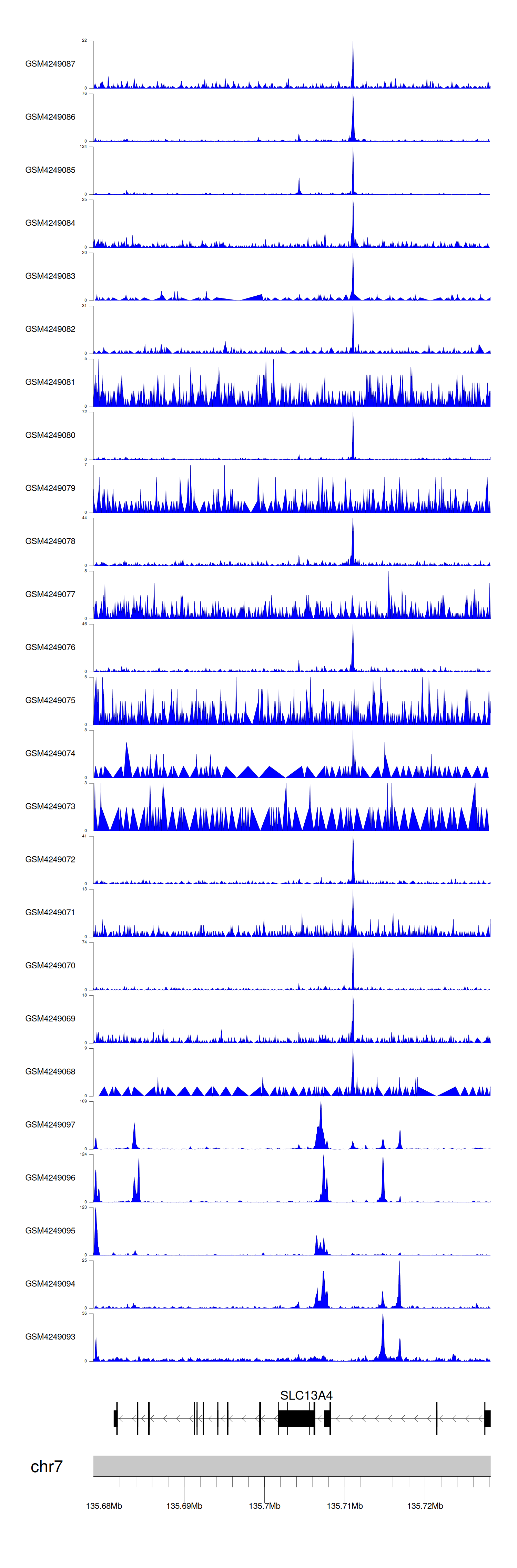 > Dataset: GSE143026 - SLC13A4 peak across samples