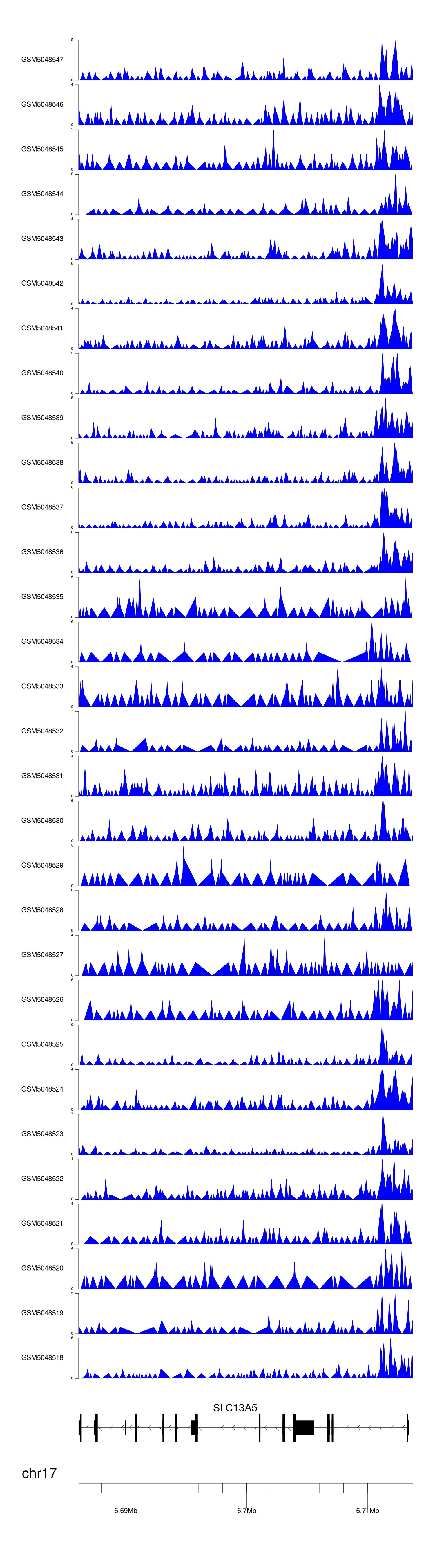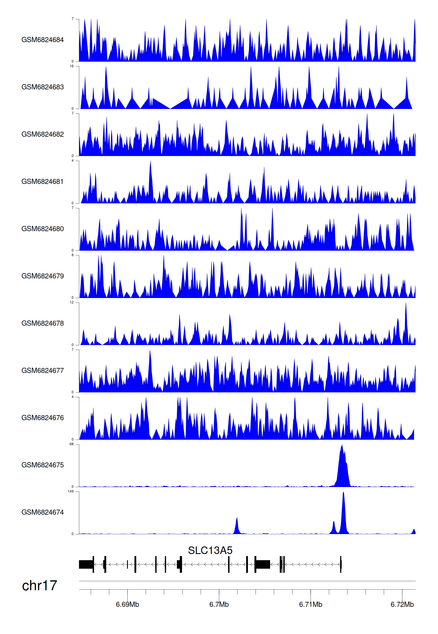 > Dataset: GSE165703 - SLC13A5 peak across samples