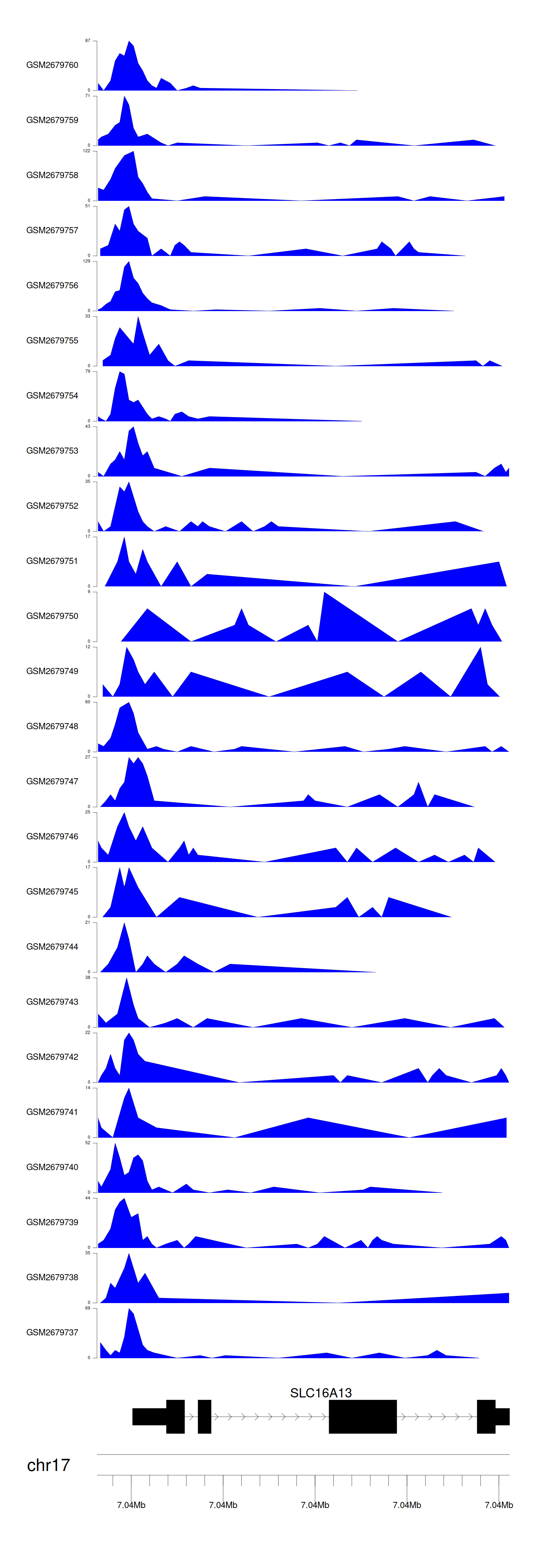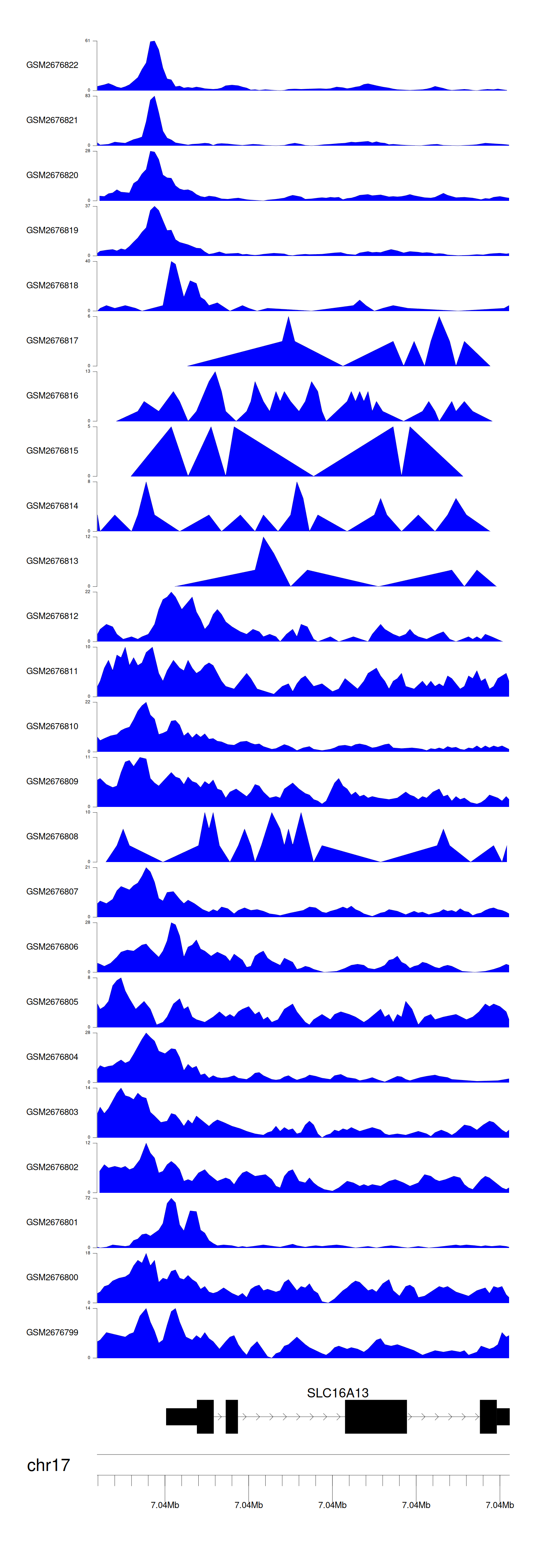 > Dataset: GSE100376 - SLC16A13 peak across samples