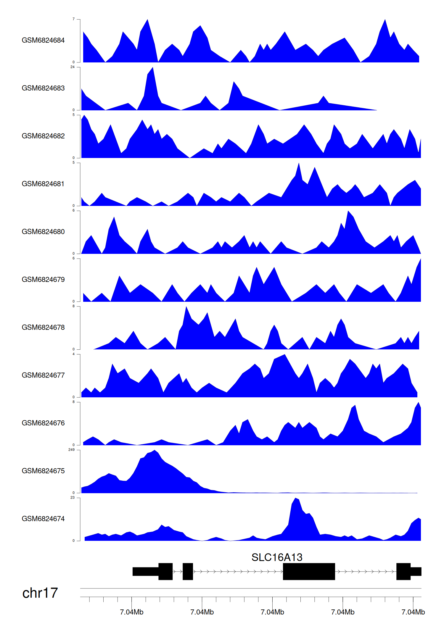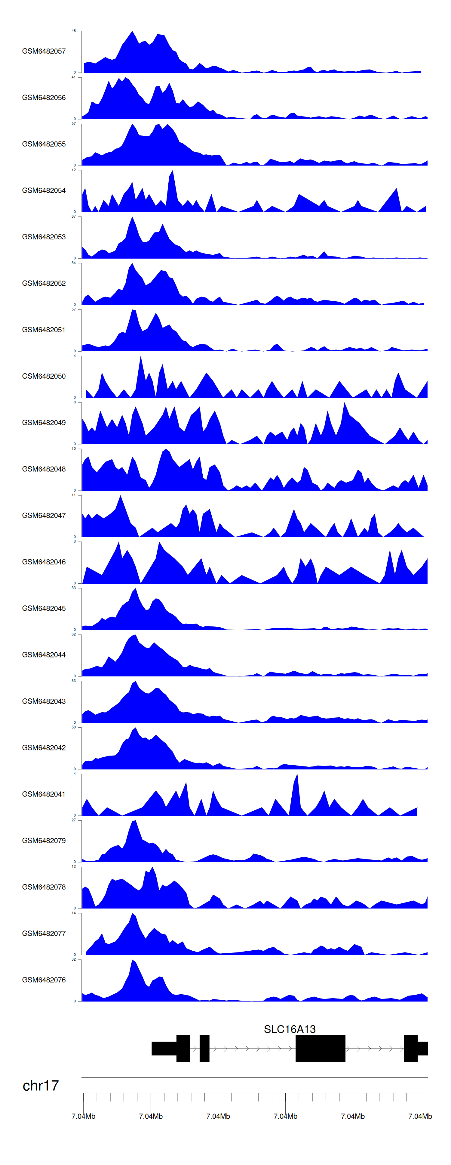 > Dataset: GSE144329 - SLC16A13 peak across samples