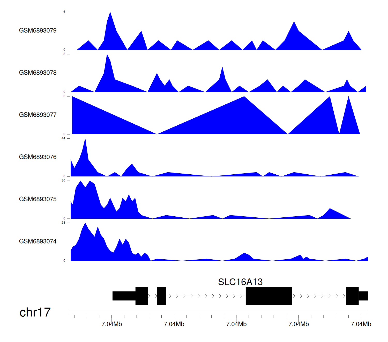 > Dataset: GSE211651 - SLC16A13 peak across samples