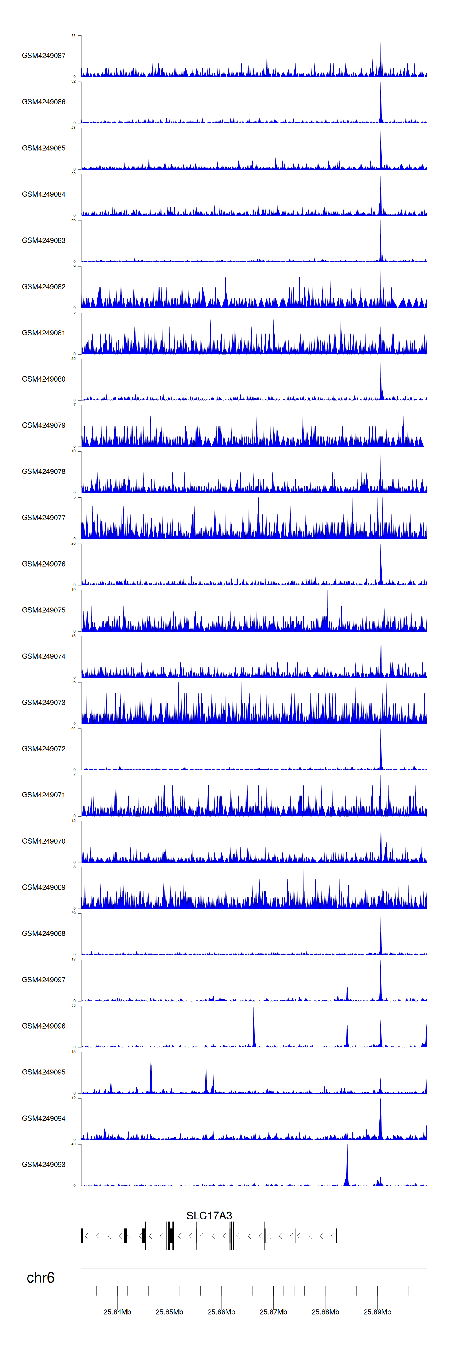 > Dataset: GSE143026 - SLC17A3 peak across samples