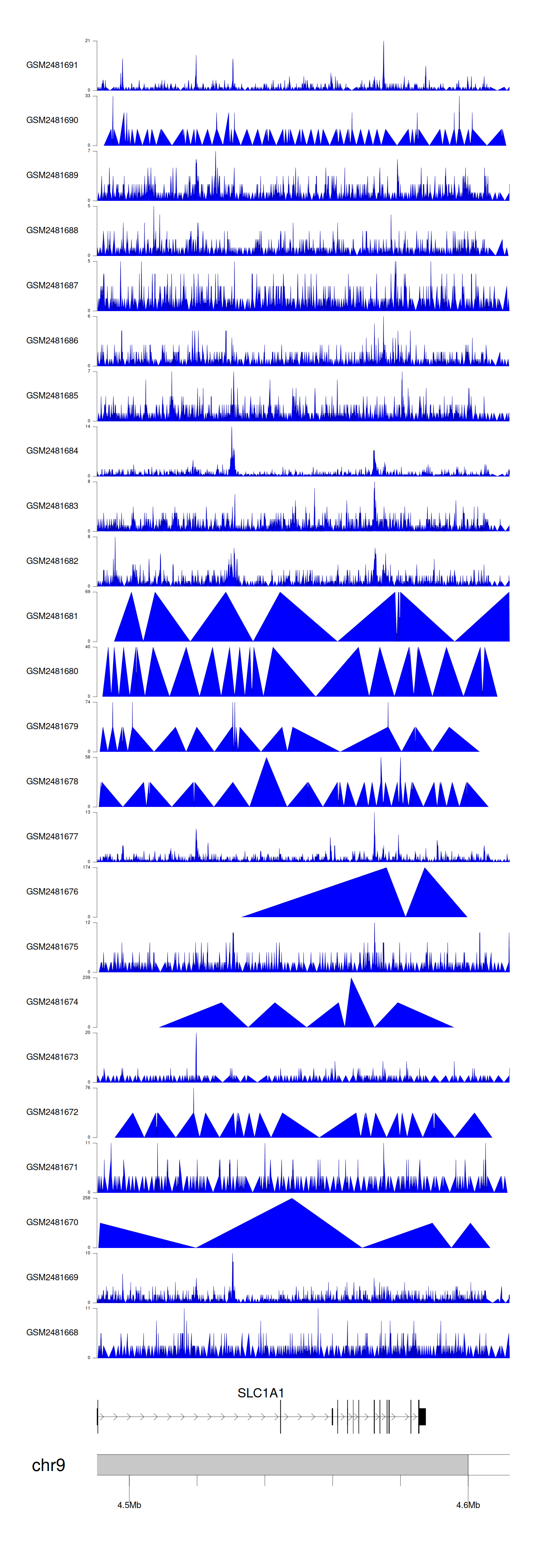 > Dataset: GSE94732 - SLC1A1 peak across samples