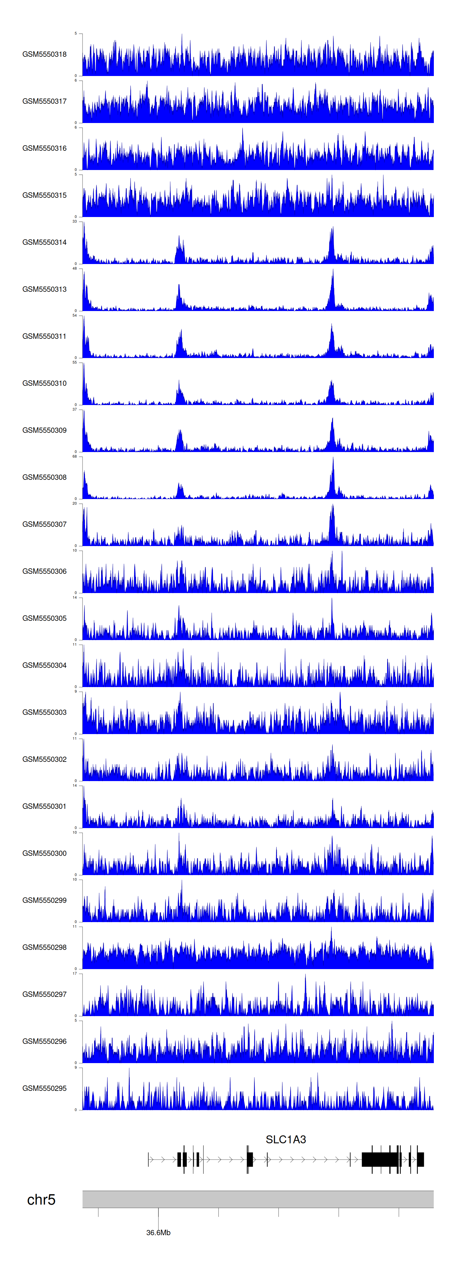 > Dataset: GSE143026 - SLC1A3 peak across samples