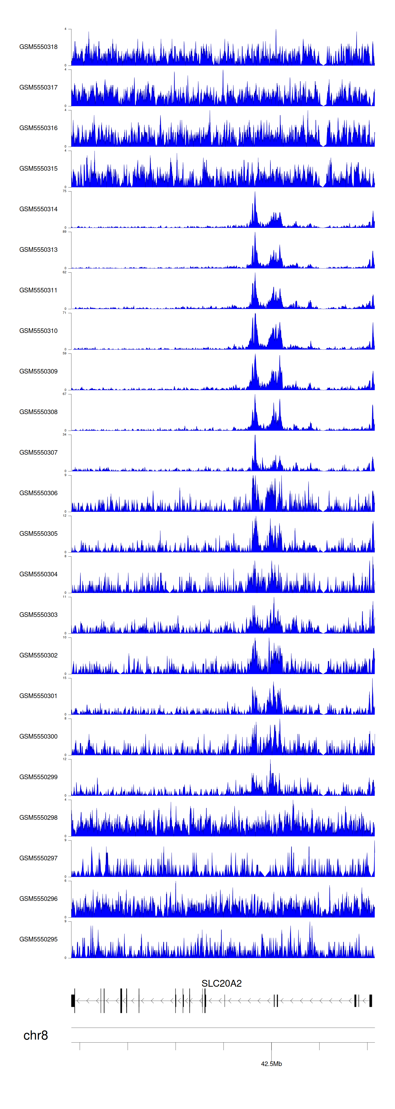 > Dataset: GSE143026 - SLC20A2 peak across samples