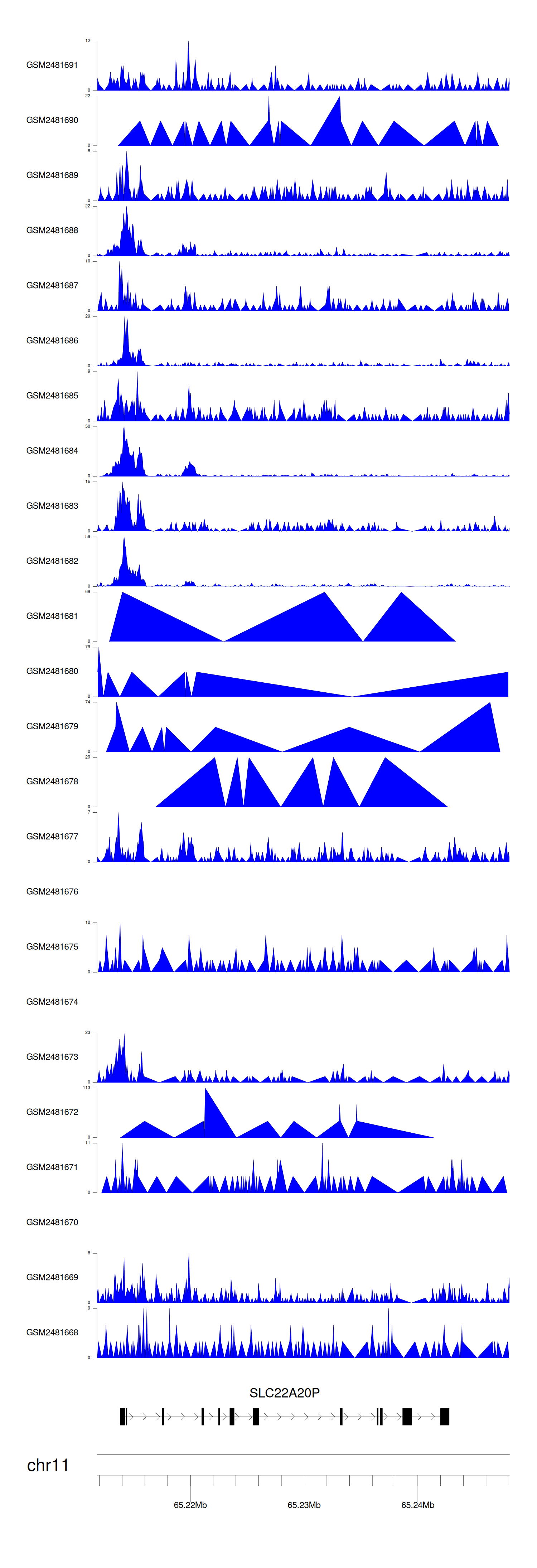Target gene [SLC22A20P] related to VISs