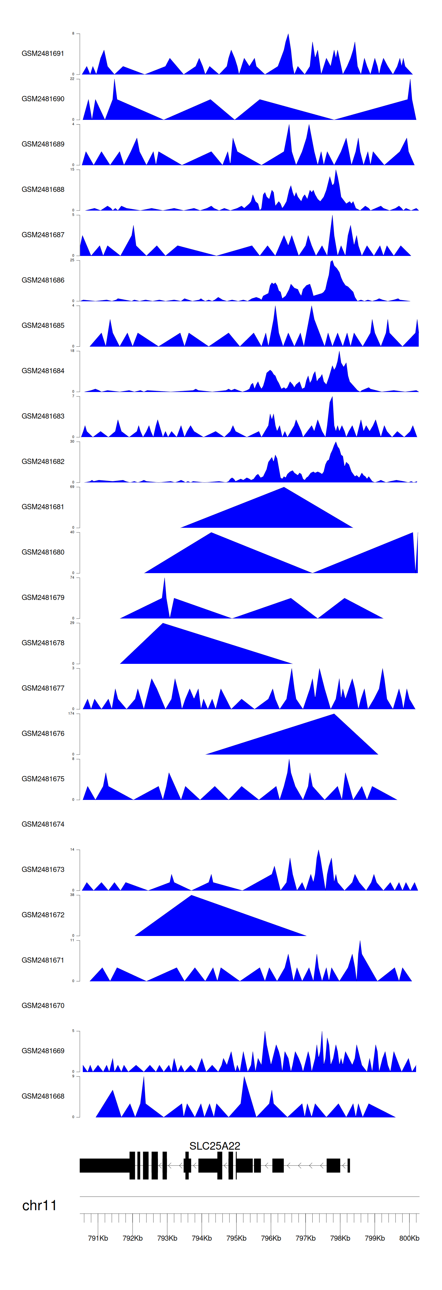 > Dataset: GSE94732 - SLC25A22 peak across samples