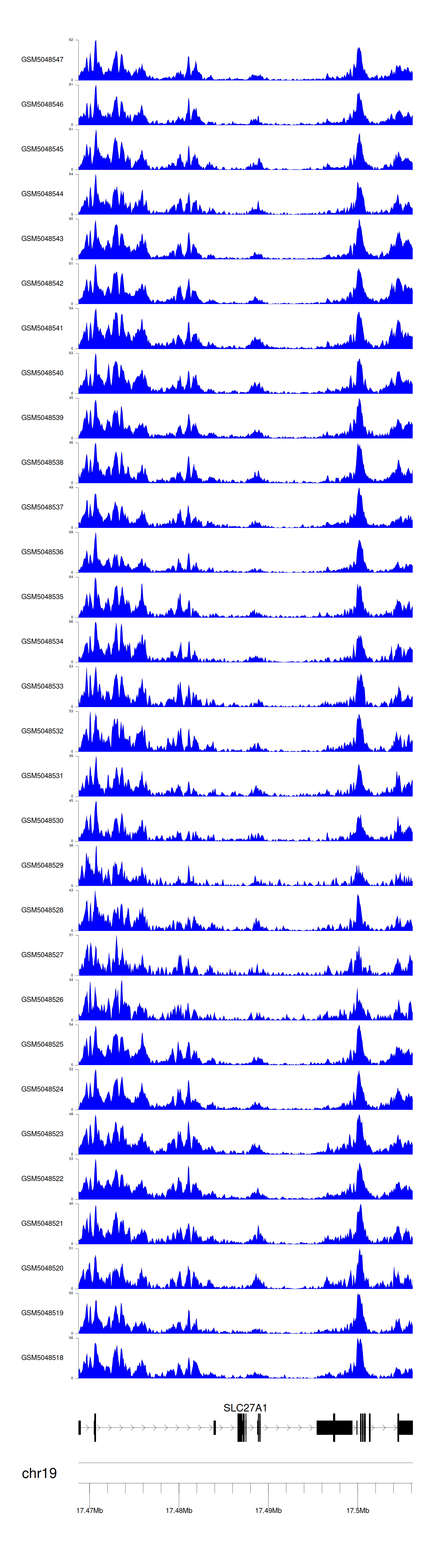 > Dataset: GSE100376 - SLC27A1 peak across samples
