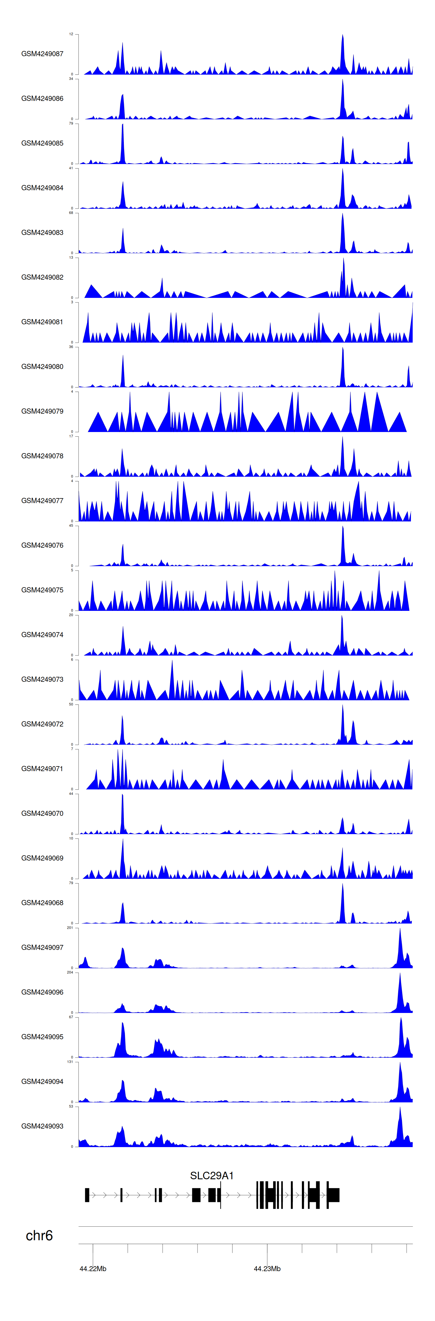 > Dataset: GSE143026 - SLC29A1 peak across samples