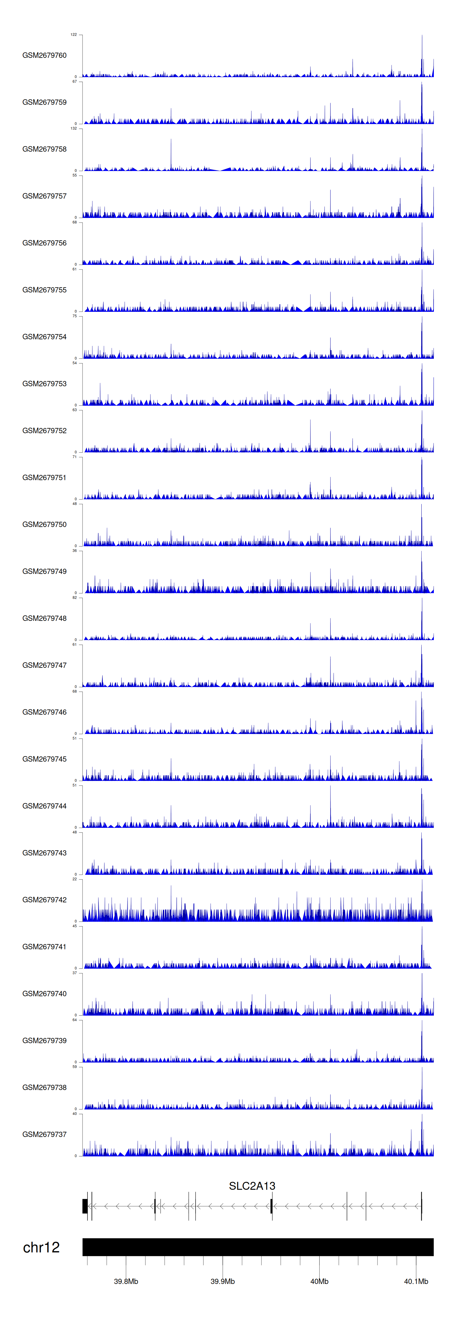 > Dataset: GSE144329 - SLC2A13 peak across samples