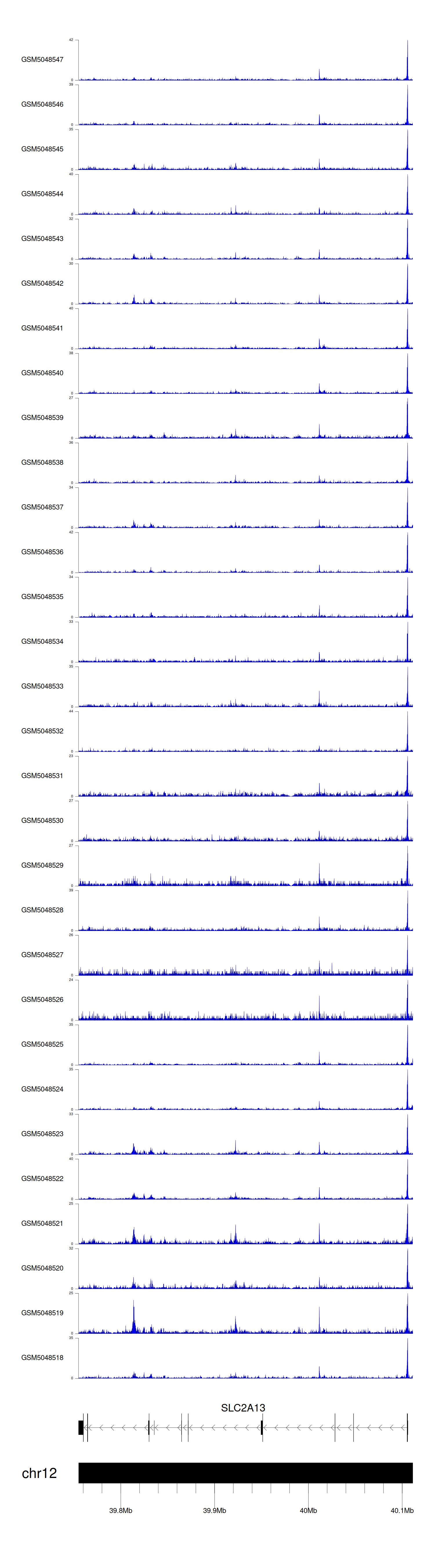 > Dataset: GSE165705 - SLC2A13 peak across samples