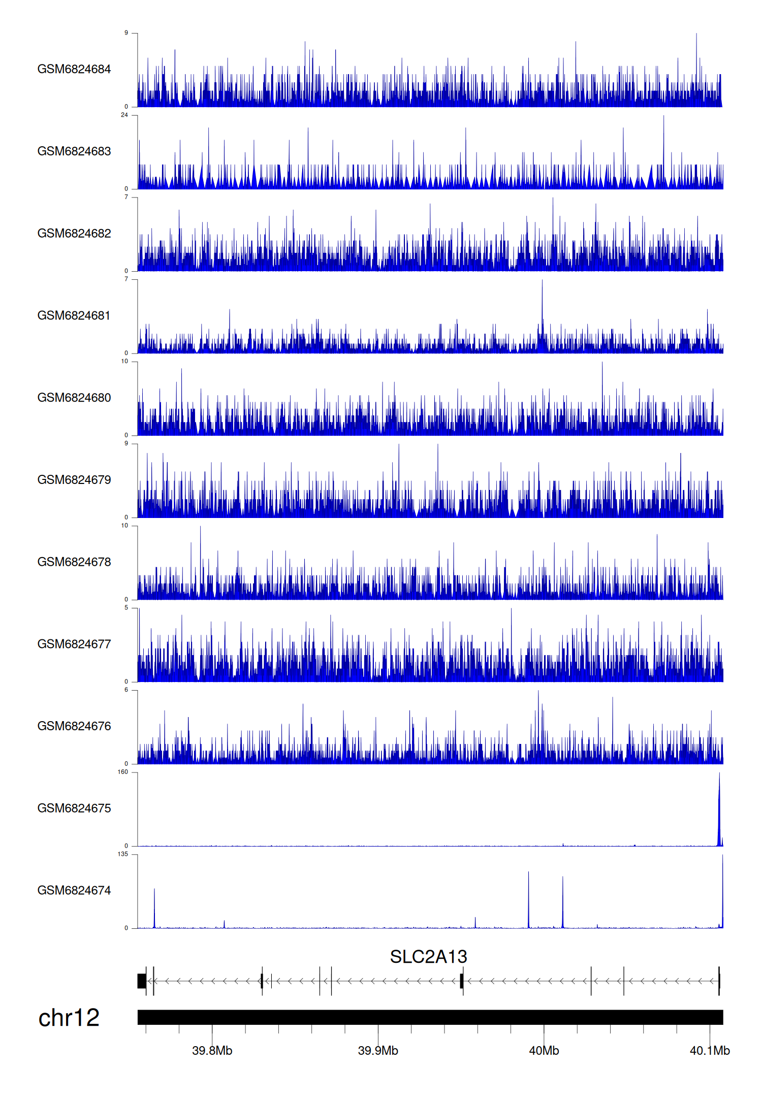 > Dataset: GSE220859 - SLC2A13 peak across samples