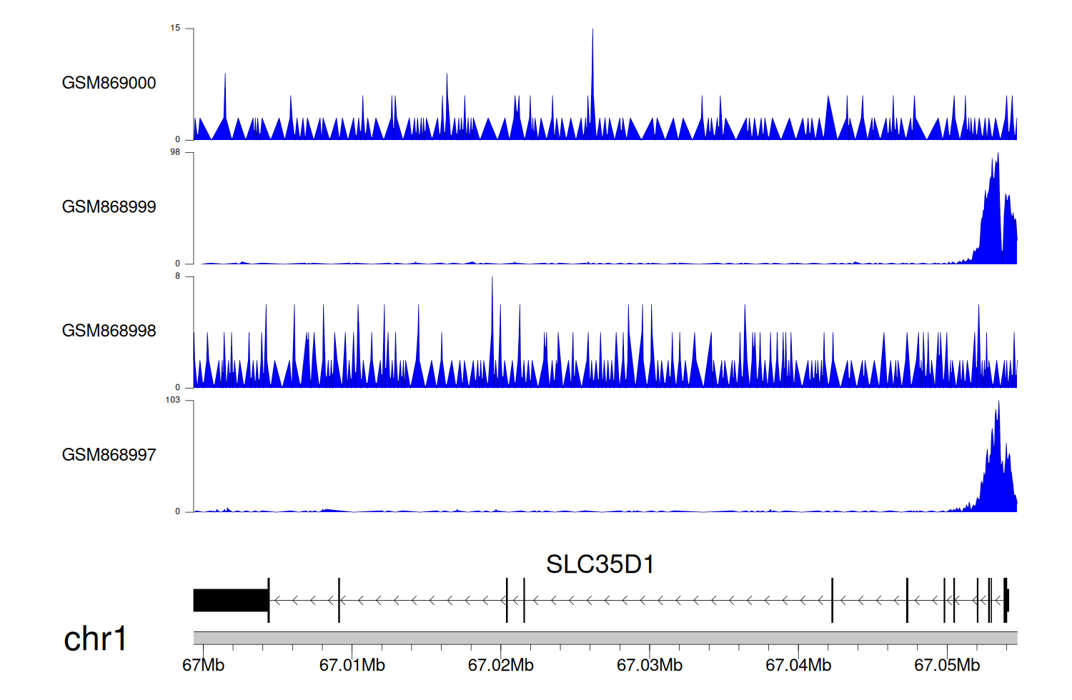> Dataset: GSE68402 - SLC35D1 peak across samples