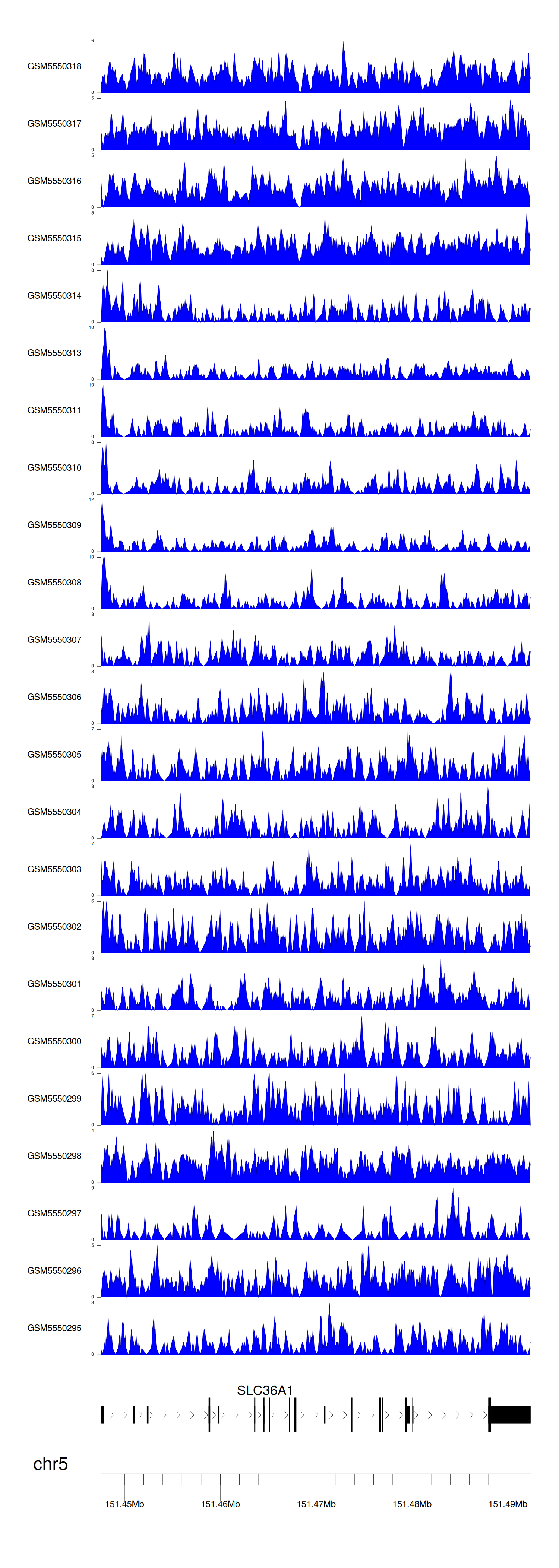 > Dataset: GSE143026 - SLC36A1 peak across samples