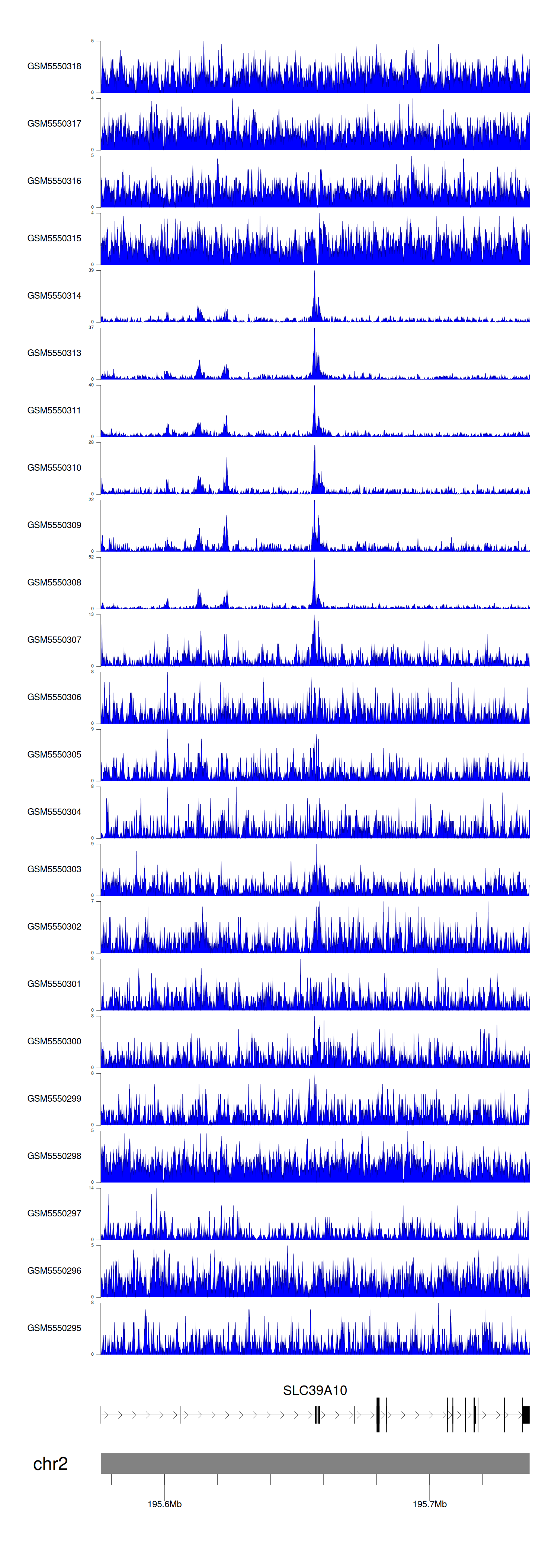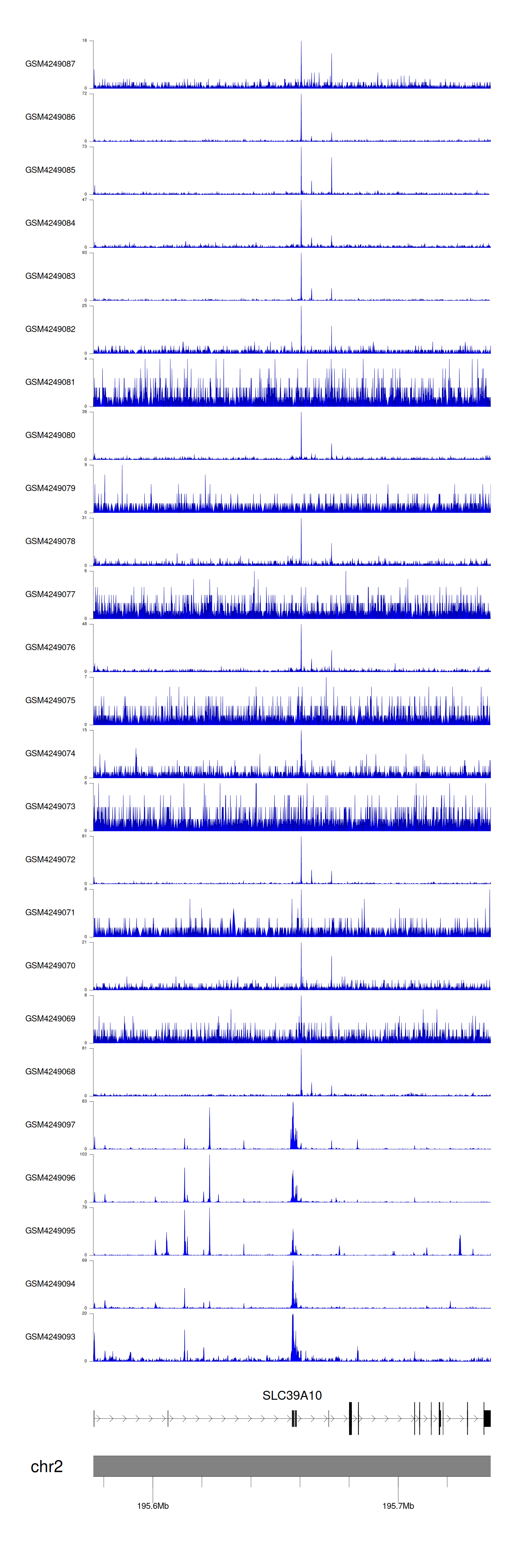 > Dataset: GSE143026 - SLC39A10 peak across samples