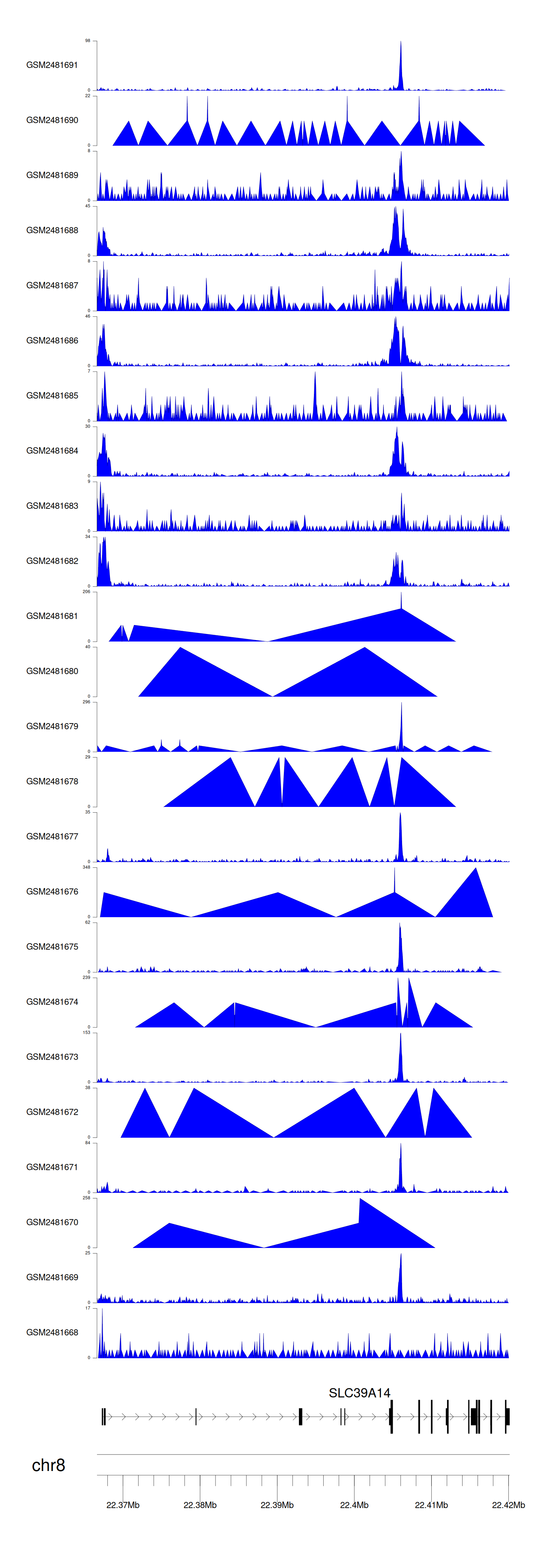 > Dataset: GSE94732 - SLC39A14 peak across samples