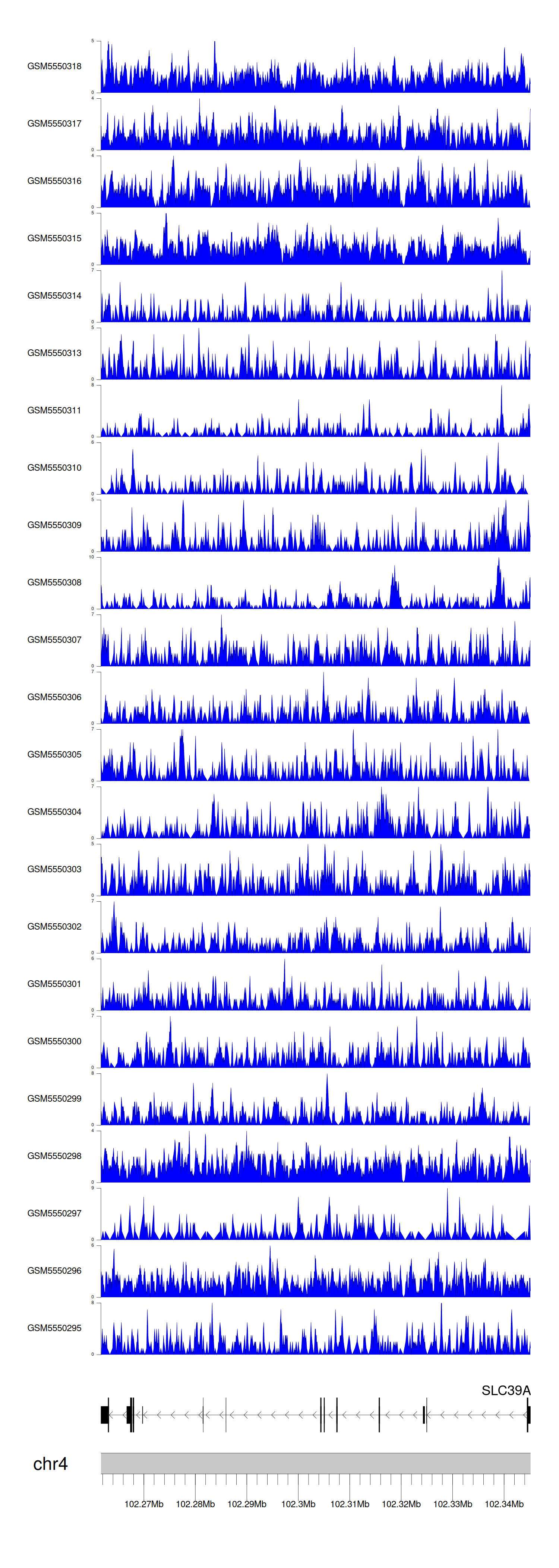 > Dataset: GSE143026 - SLC39A8 peak across samples