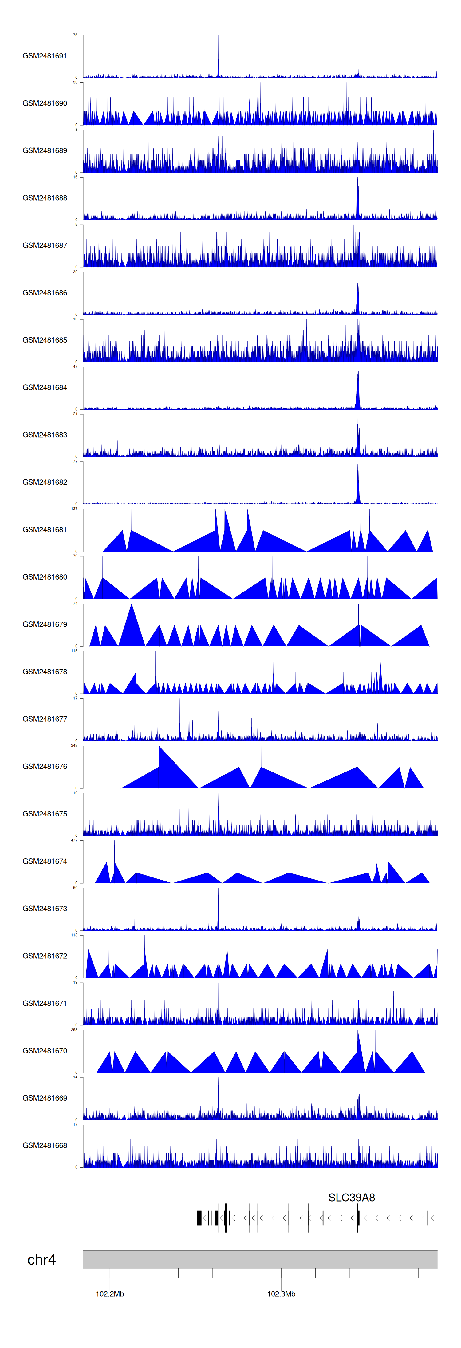 > Dataset: GSE94732 - SLC39A8 peak across samples