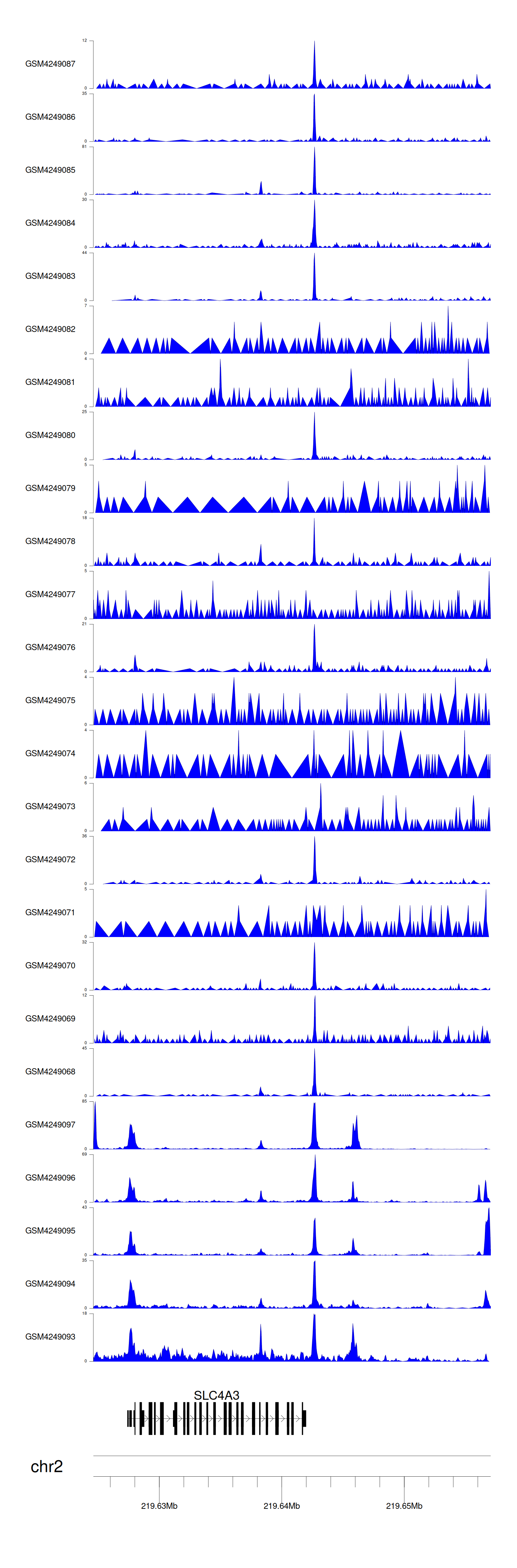 > Dataset: GSE143026 - SLC4A3 peak across samples
