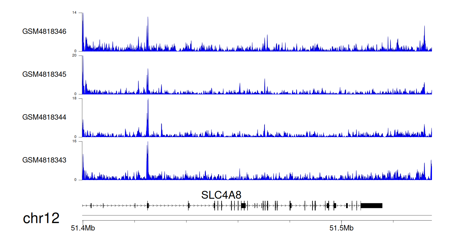 > Dataset: GSE131257 - SLC4A8 peak across samples