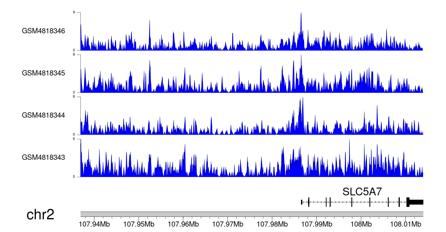 > Dataset: GSE131257 - SLC5A7 peak across samples